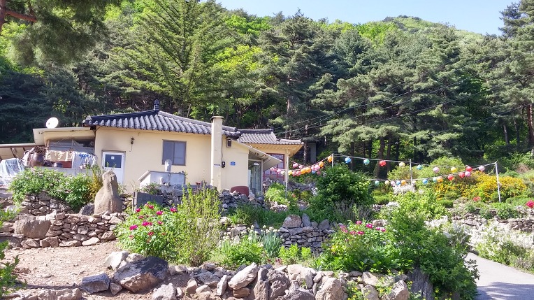 은곡사경내 꽃밭~샘터가없어 스님에게 부탁하여 식수를 공급 받습니다