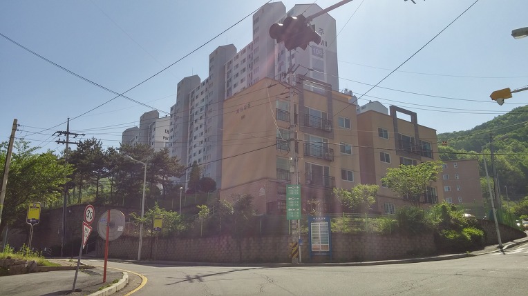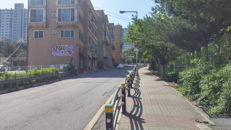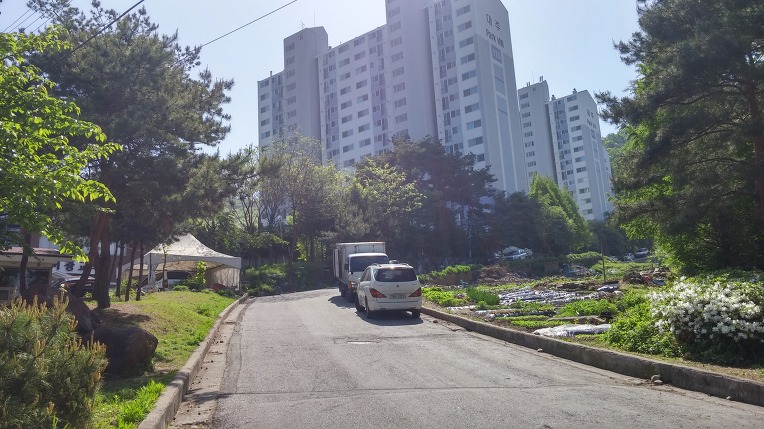 대주아파트가 전면에 보이는 삼거리에서 좌측도로길로 진행하다가