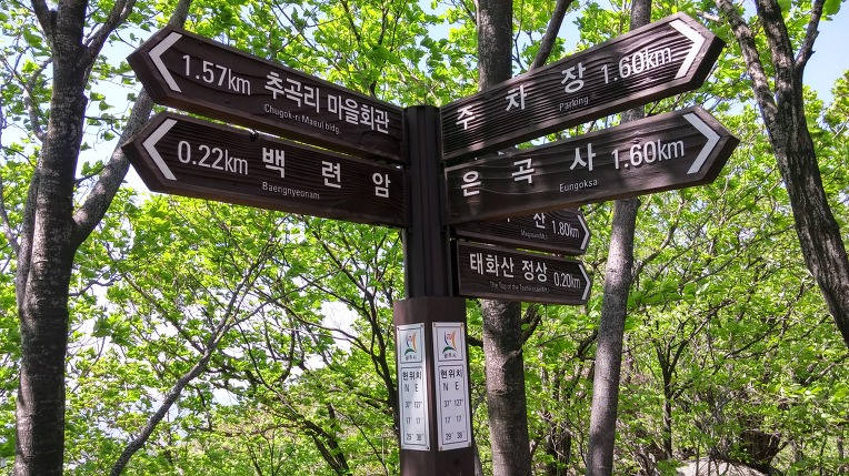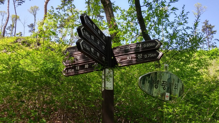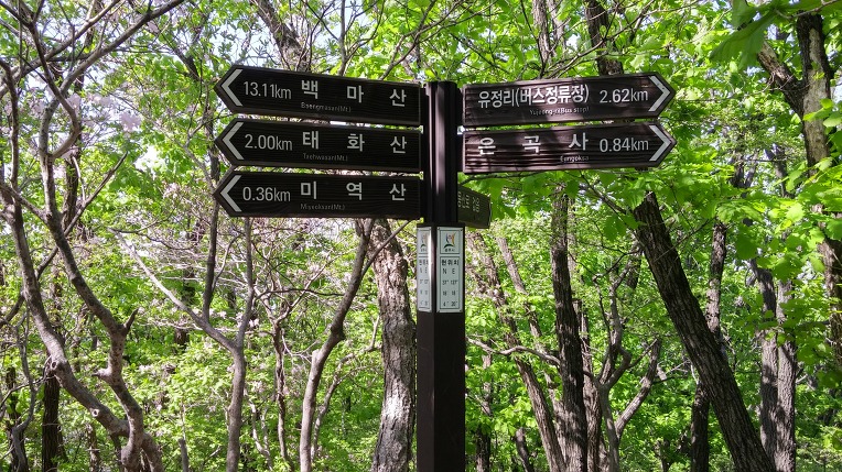 은곡사에서 직진하면 미역산직등로~우측은 병풍바위와 샘터~태화산 연결등로