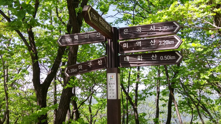 정광산(563m)~벌덕산(475m)~마구산(595m)~태화산(644m)~미역산(613m)~은곡사~도척삼거리