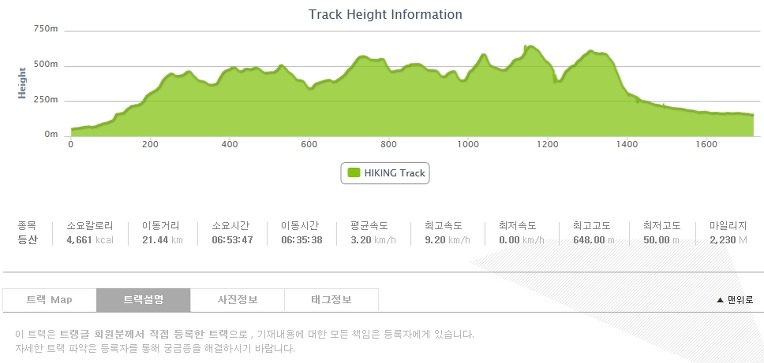도상거리:21.45km/총소요시간:6시간53분/산행시간:6시간35분/평균속도:3.2km/난이도:중하/누구랑:나홀로