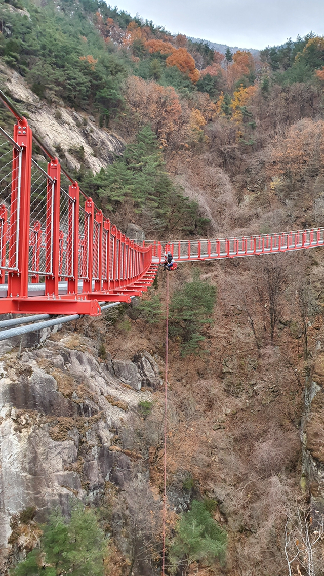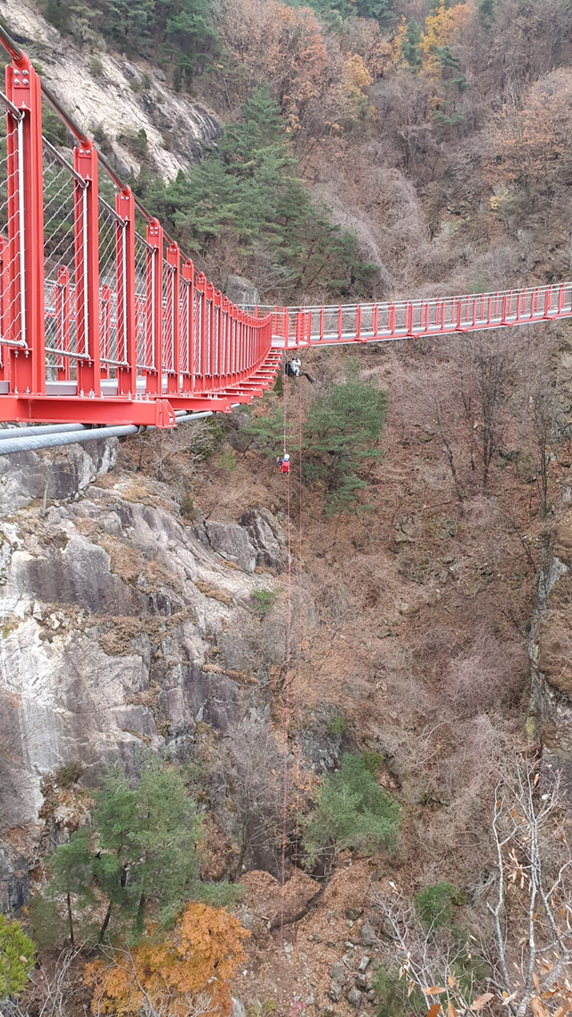 출렁다리 결국 하강을 하셨군요.