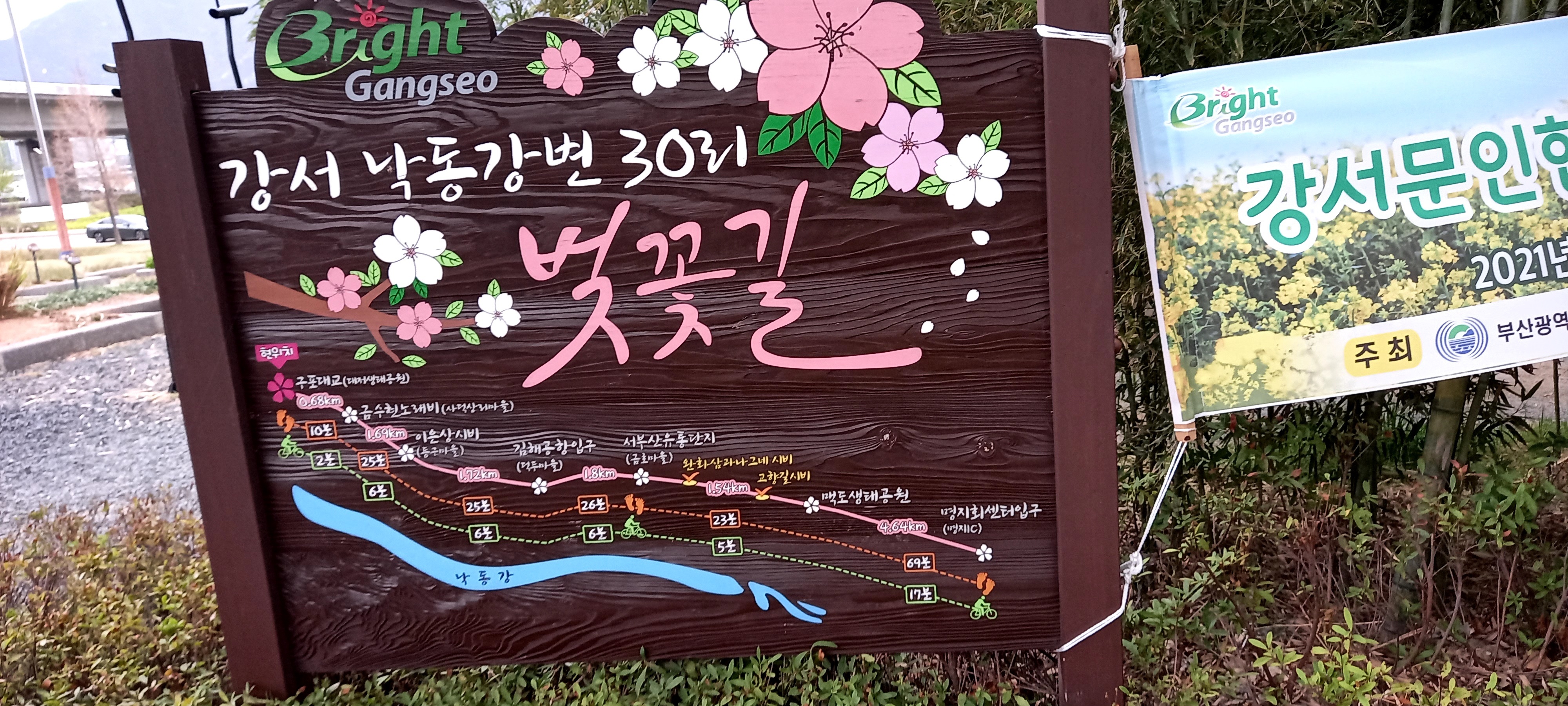 강서구청까지 강서 낙동강변 30리 벚꽃길(약13km)을 걸었다.