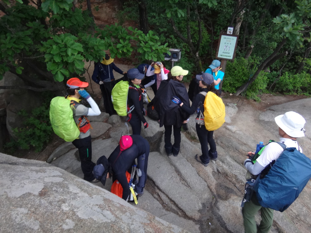 빗방울이 뚝뚝 떨어지고 마당바위서 잠시 채비를 하고 갑니다.