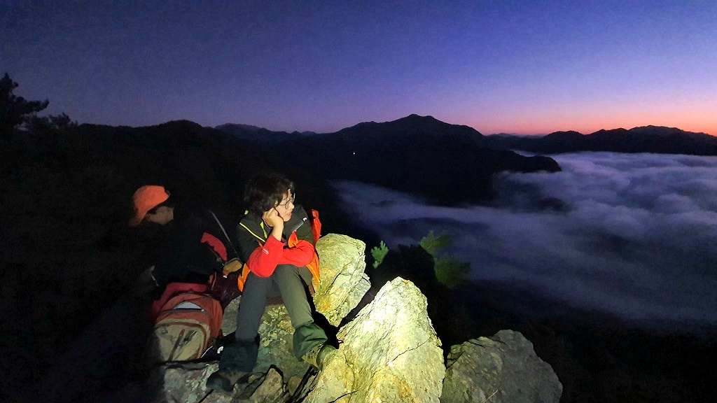 부엉산의 정상 암릉 위에서 일출을 기다리며