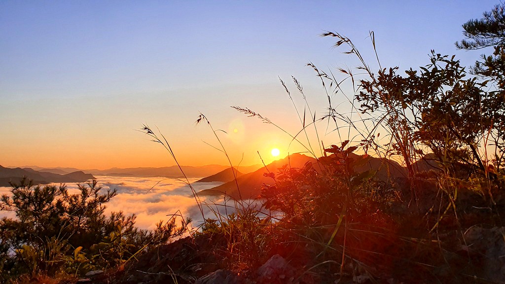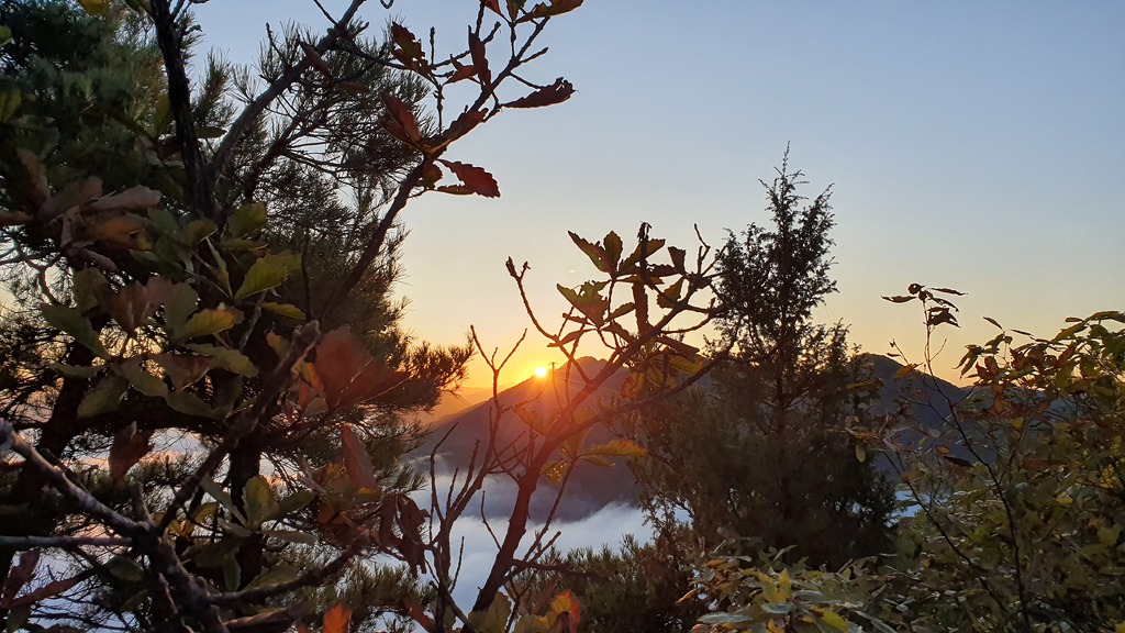 갈기산 왼쪽으로 태양이 인사한다.