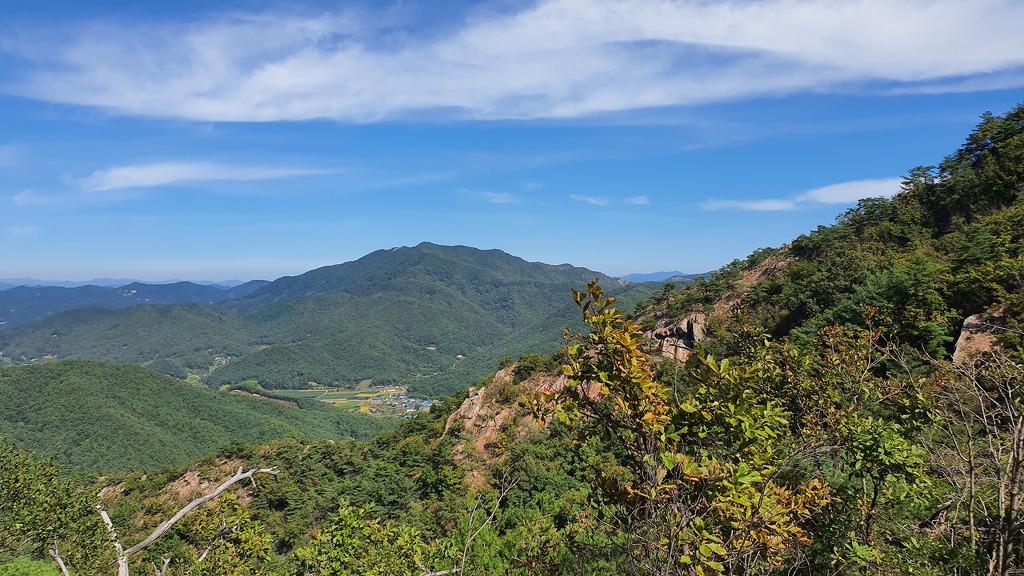 앞쪽으로 마니산이 우뚝하네요. 우측으로 동골산이 이어지고