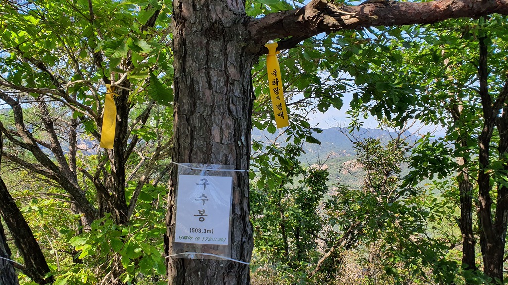 구수봉으로 진행 좌측 천태산 주차장으로 하산할 계획입니다.