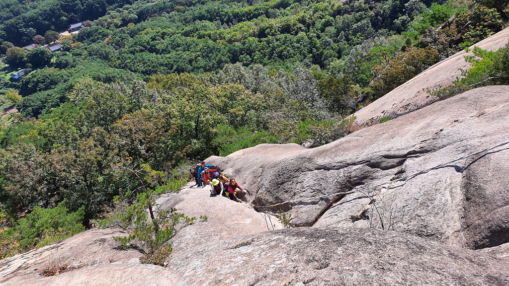 천태산 암릉을 즐기는 산객들
