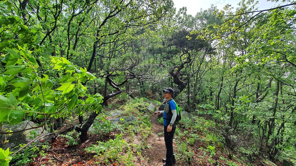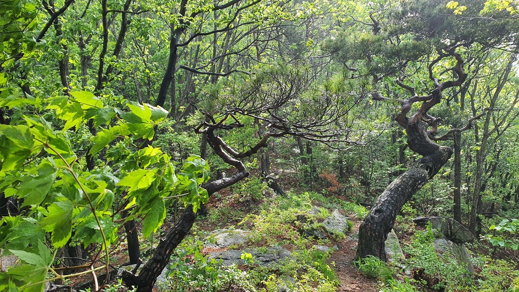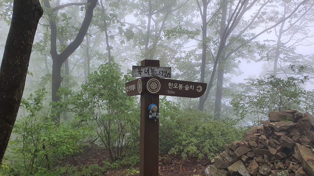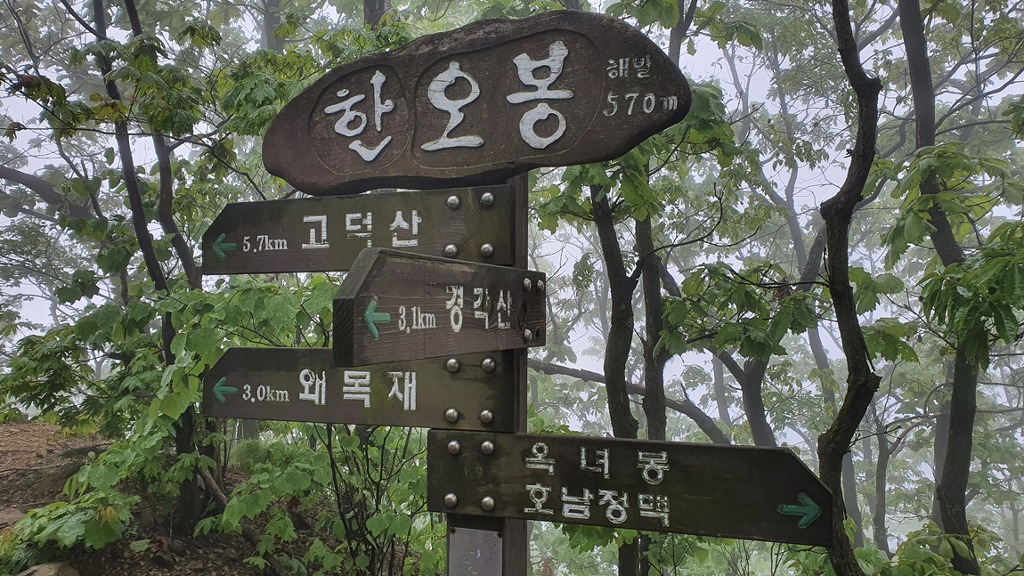 옥녀봉에서 잠시 내려갔다가 오르면 한오봉갈림길이고,