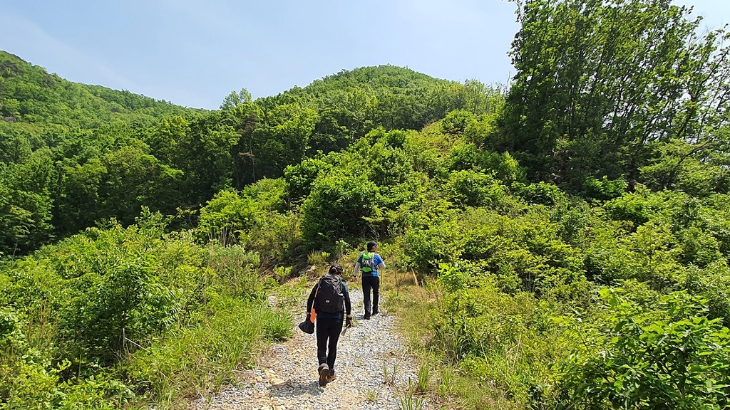 뒤로 보이는 산은 염암재 지나 가야할 박죽이산