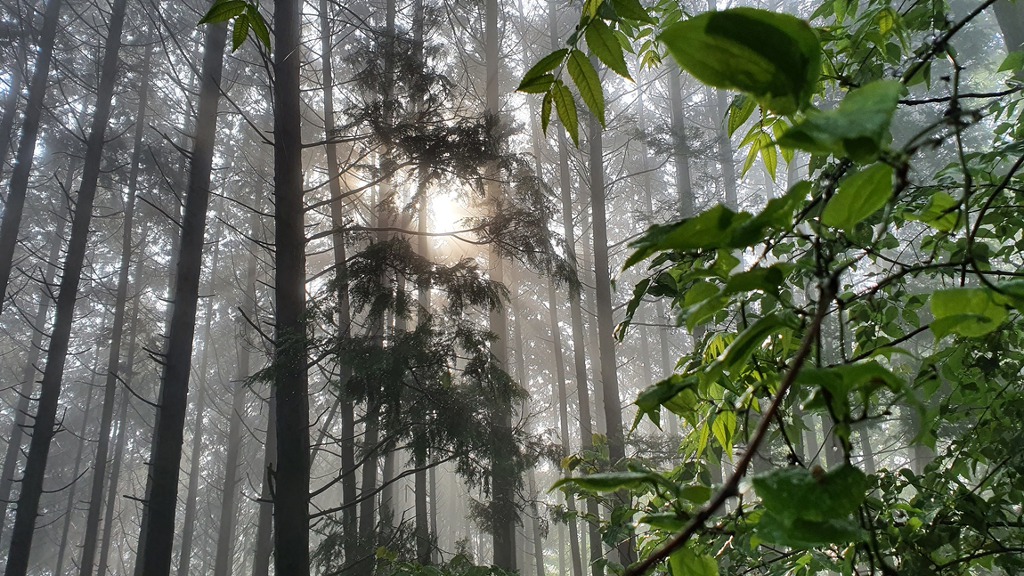 야릇하게 비치는 햇살과 안개와 초록의 만남