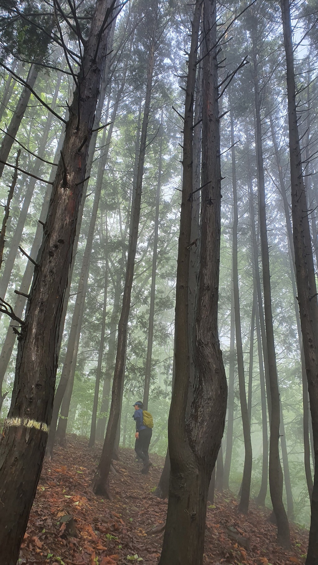 쭉쭉 뻗은 나무사이로 자욱한 안개