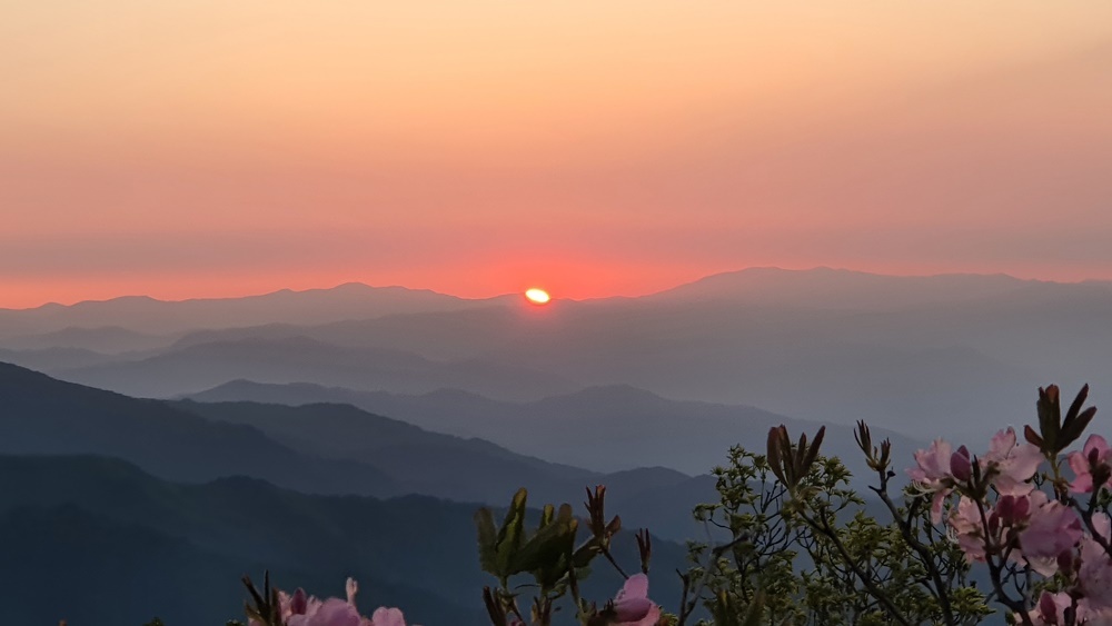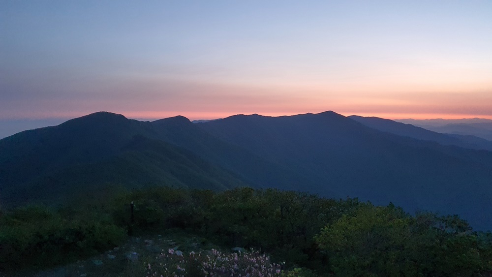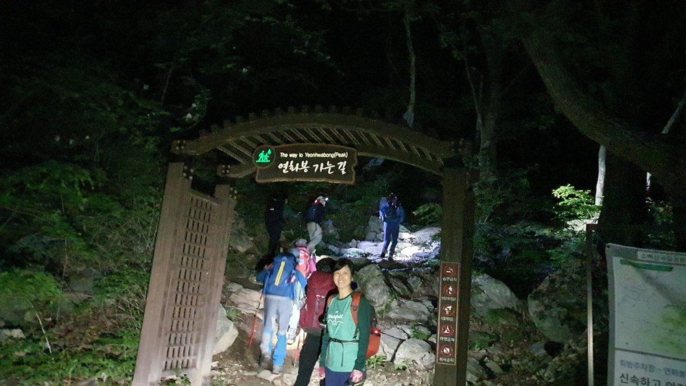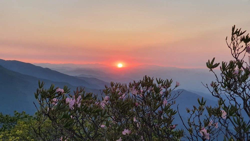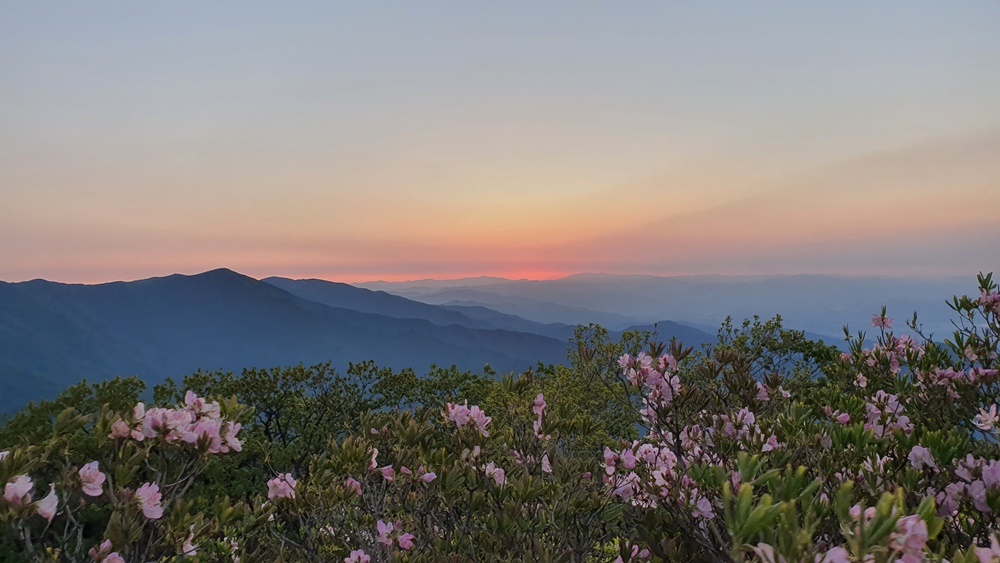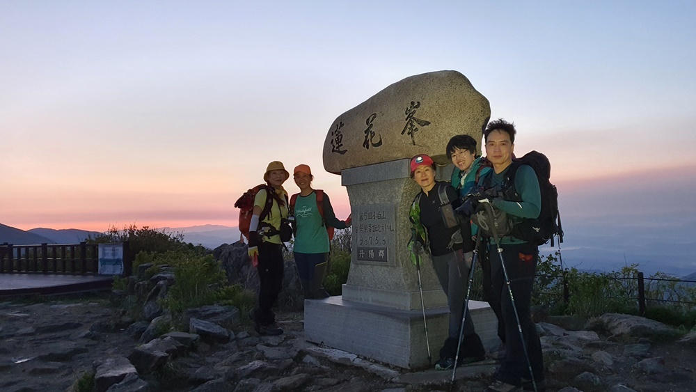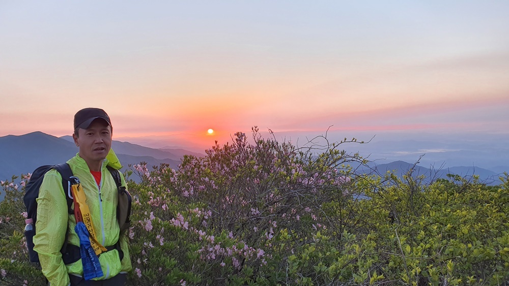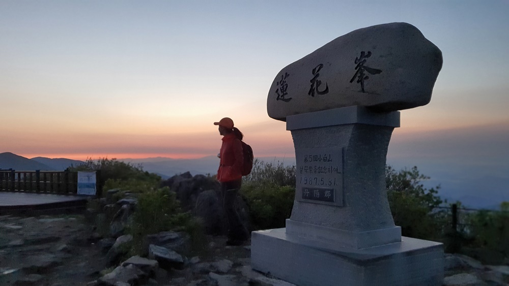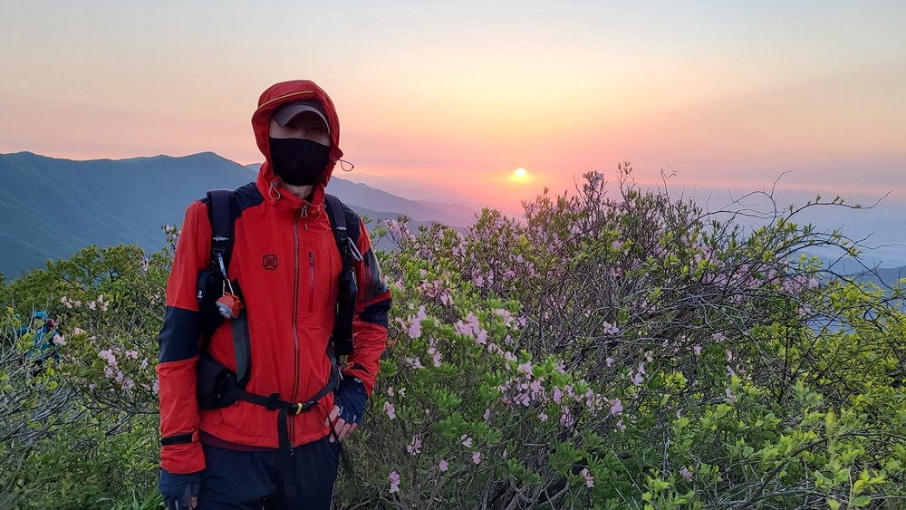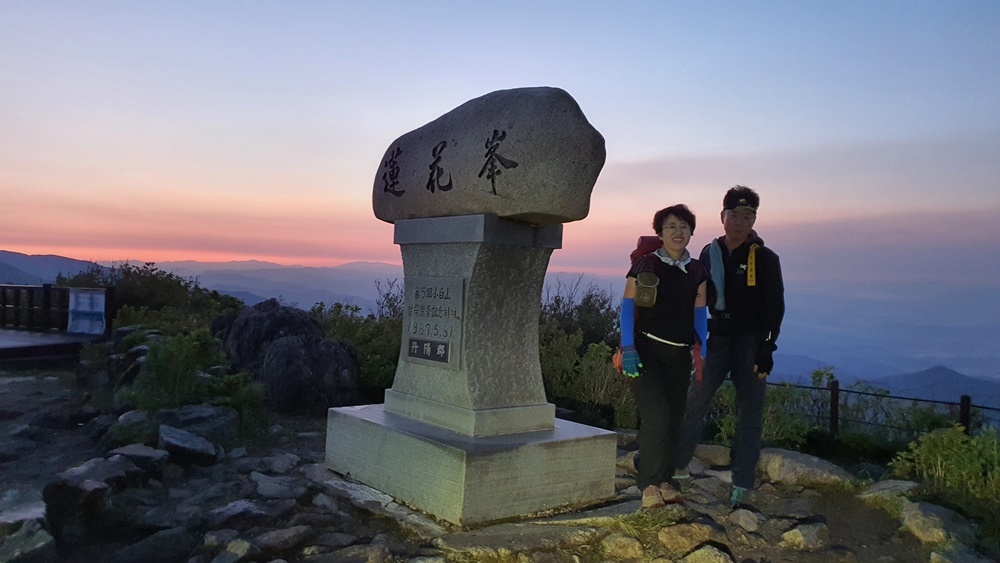 연화봉에 오르니 여명은 밝아오고 붉은 노을지고
