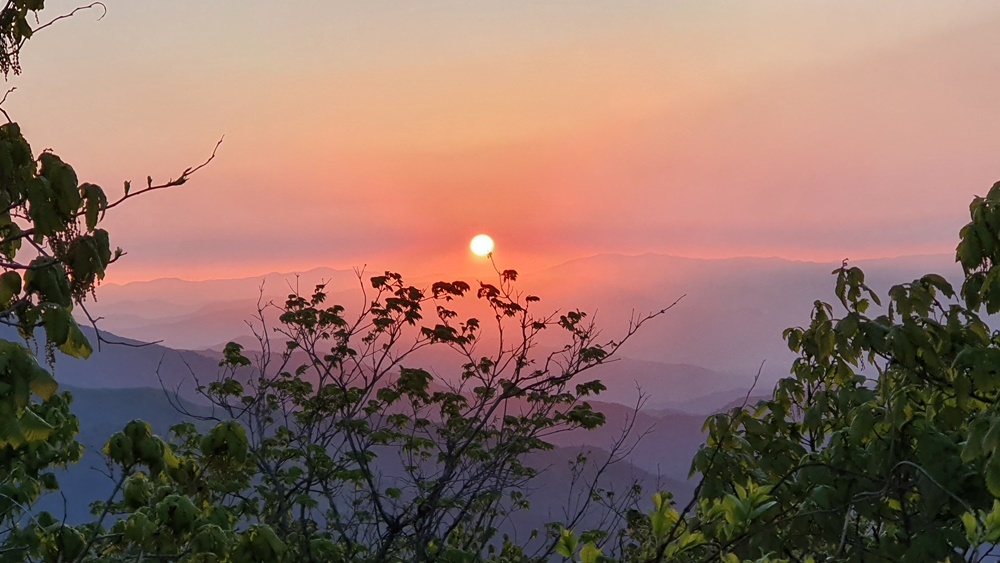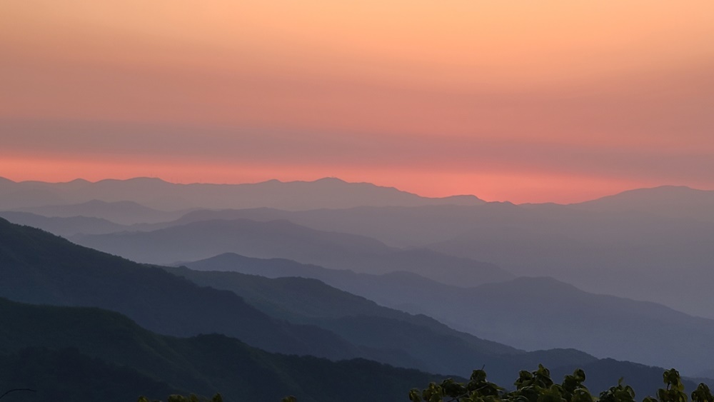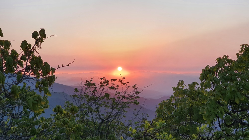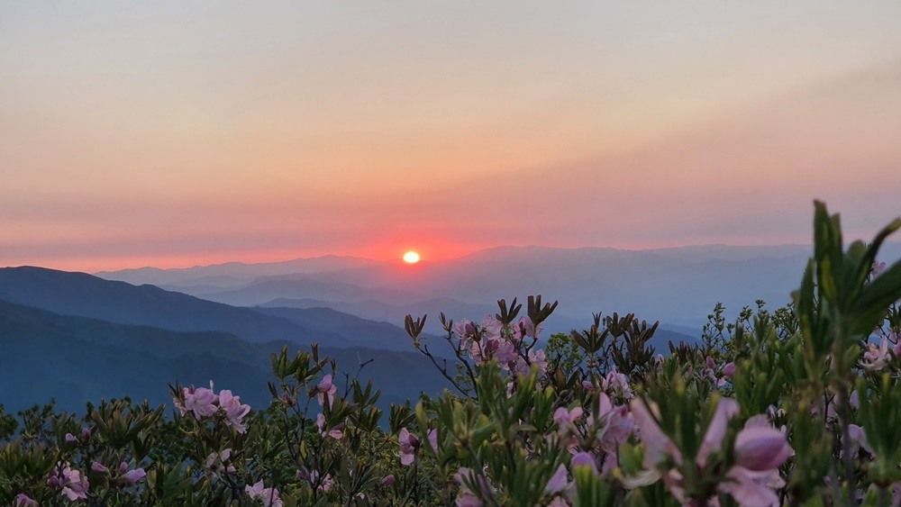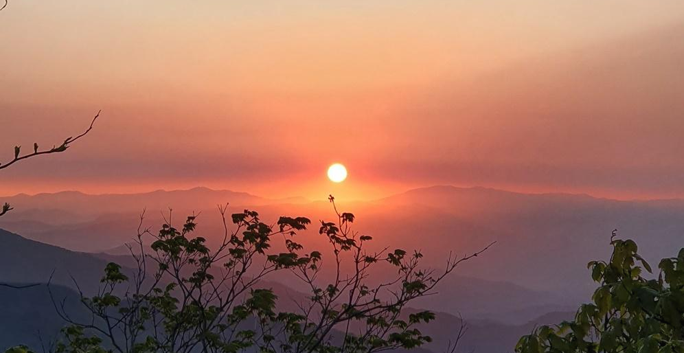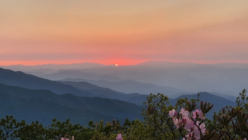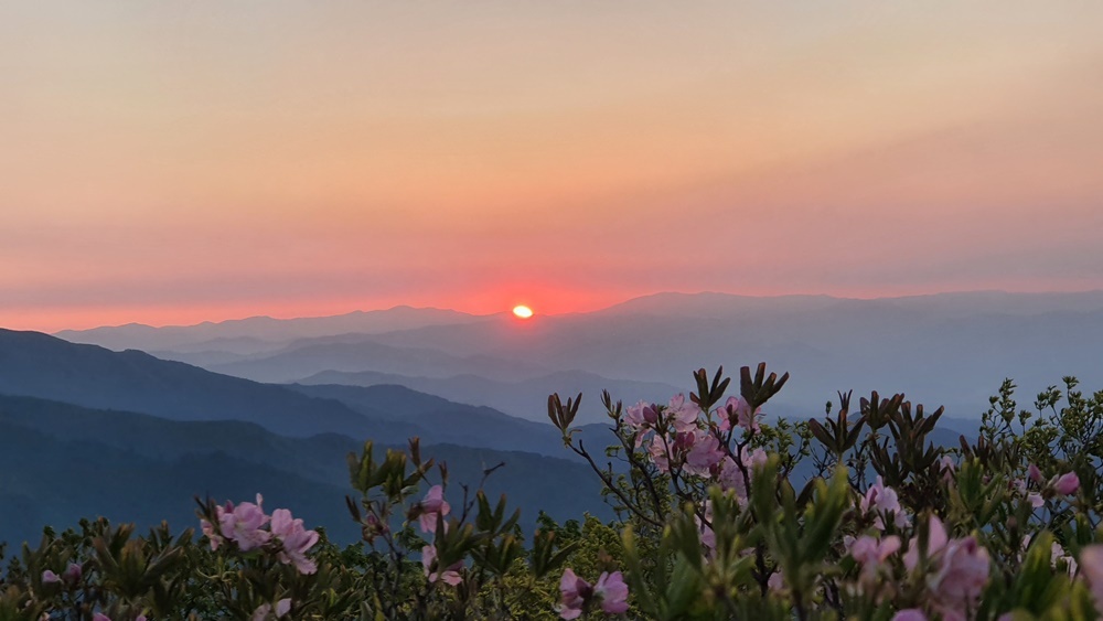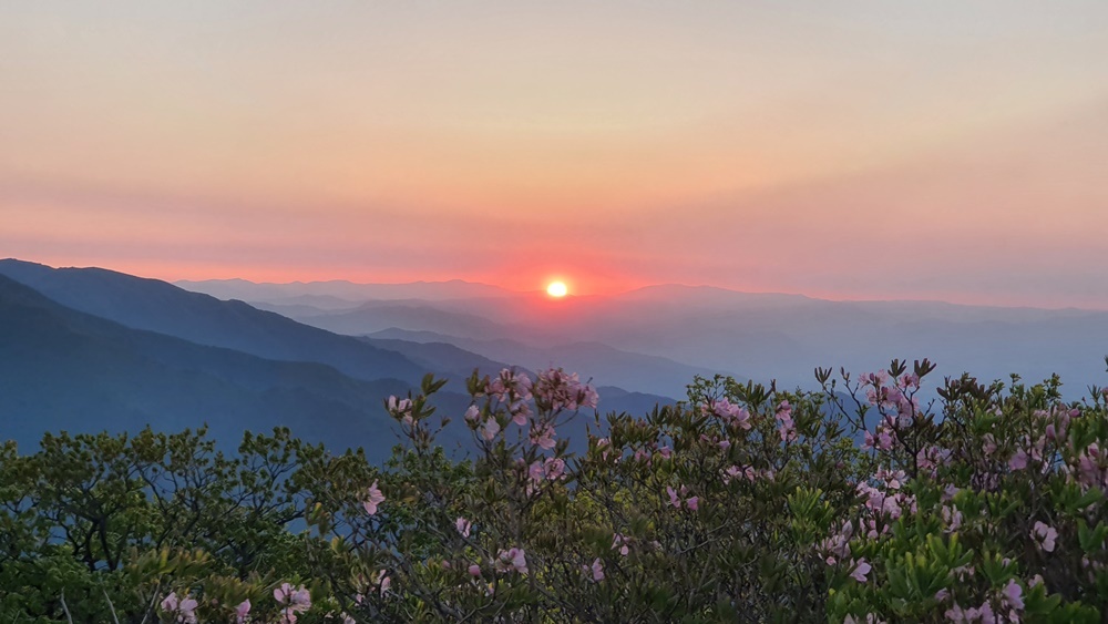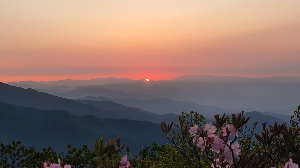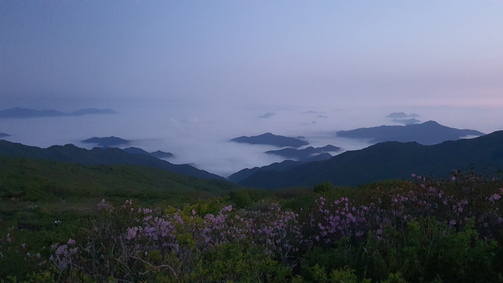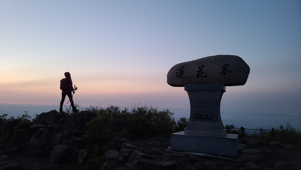 연화봉에 오르니 여명은 밝아오고 붉은 노을지고