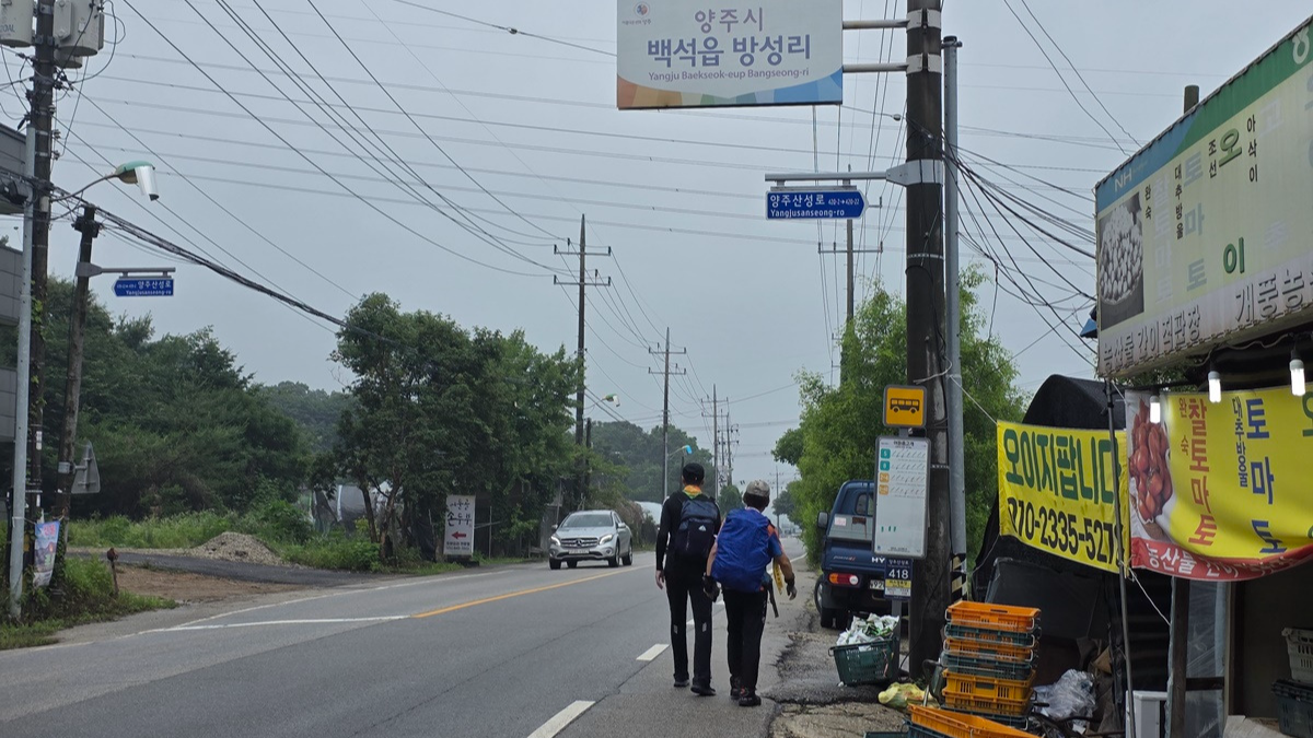 지난구간 날머리인 백석(오산)삼거리에서 산행 시작한다.