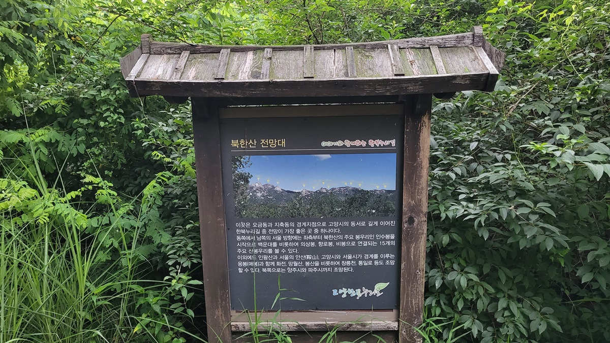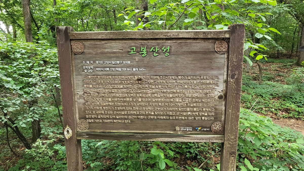 고봉산 정상은 군사지역이라 고봉산성게시판이 정상을 대신하고 있다.