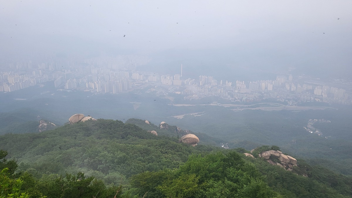 한강봉에서 감악산을 조망하는 뷰가 멋진 곳이라 기대했는데 곰탕이라 아쉬웠다.