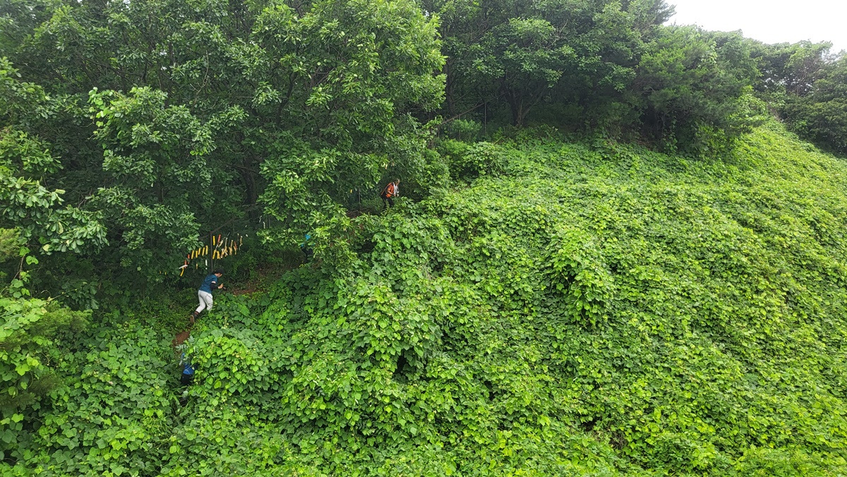 여기 절개지를 치고 올라야 맥길을 잇는다.