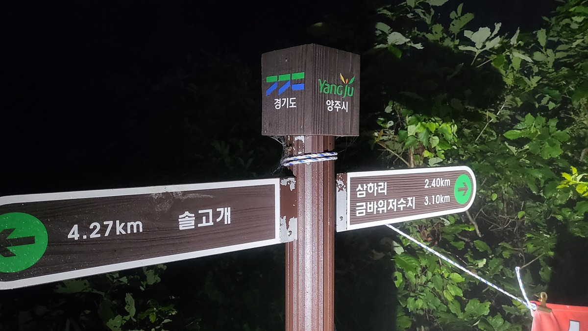 간단한 흔적으로 인증한다. 감악지맥은 화살표 방향으로 진행하자마자 우측길이 되겠다.