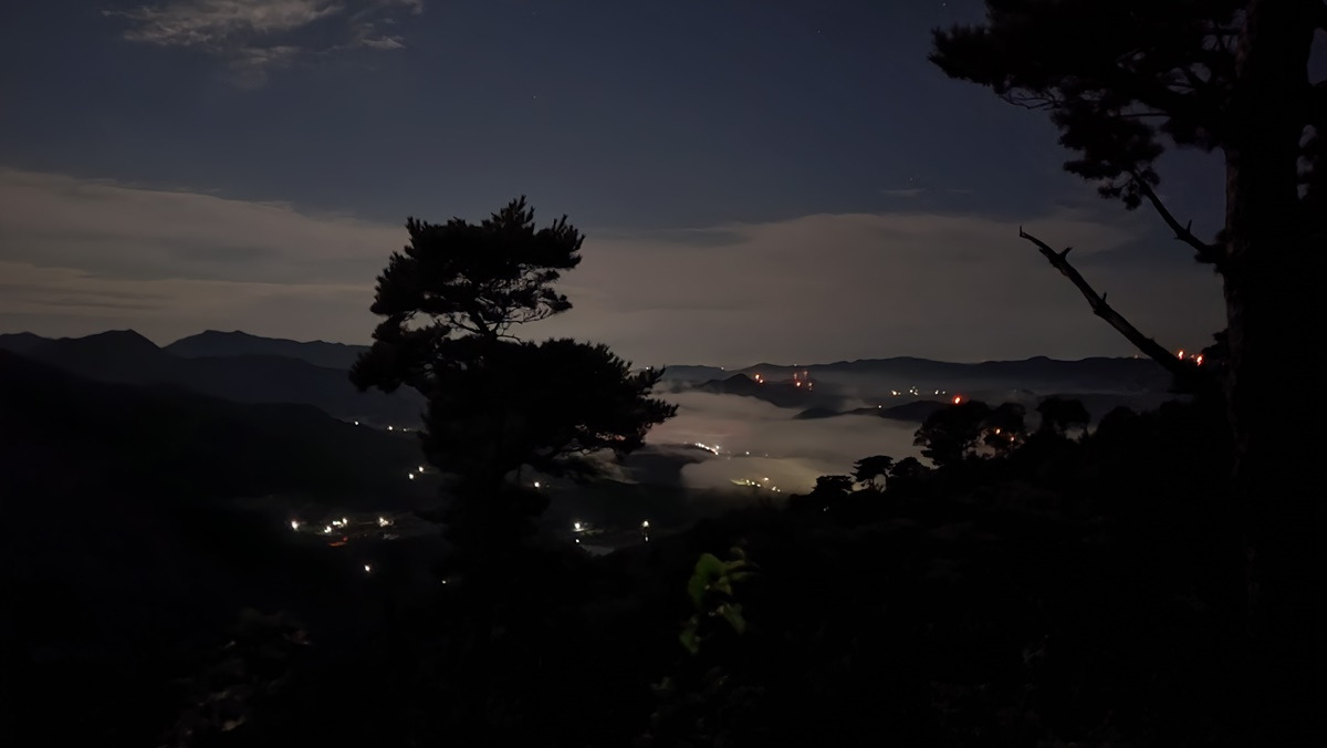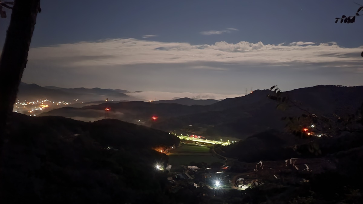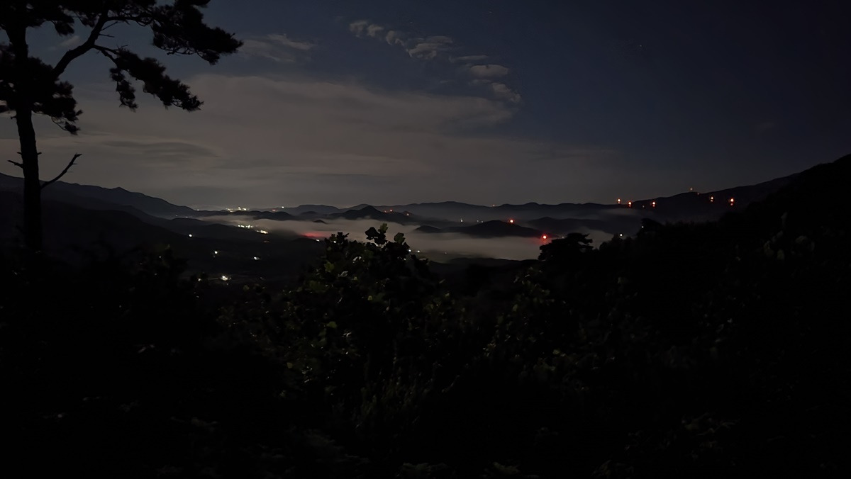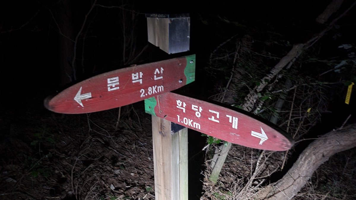 그새 어둠은 내리고... 문박산 들머리를 찾아든다.