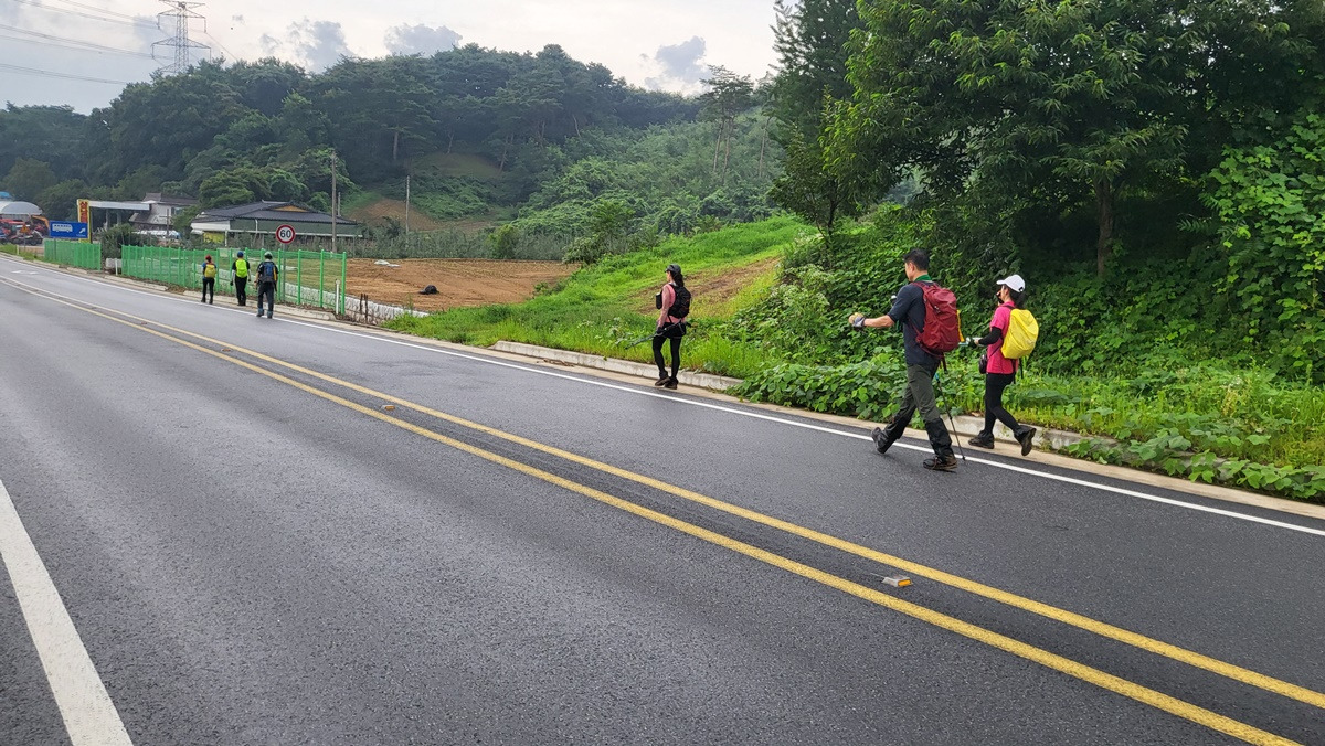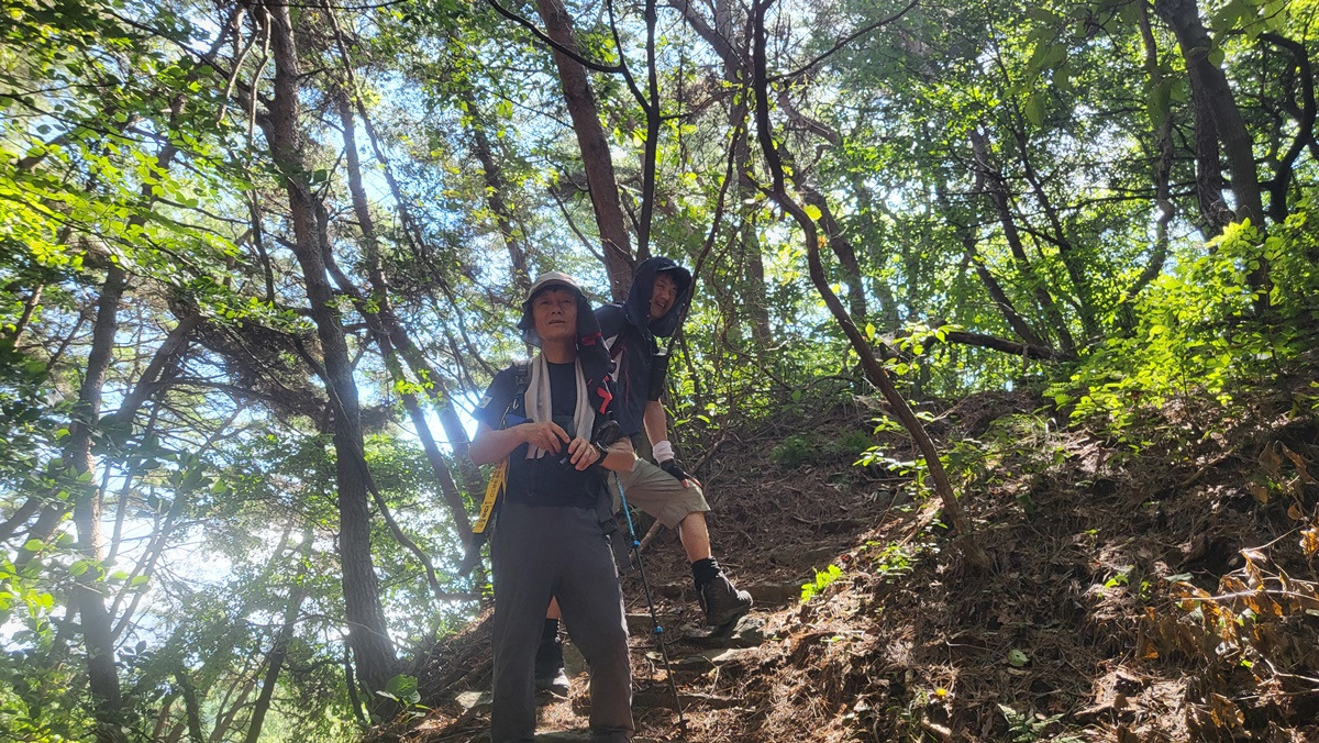 오늘도 호수선배님은 부채들고~ 여유 보이구요! 길이 순탄하지 않네요!ㅠㅠ 다음 4구간도 화이팅입니다.^^ -
