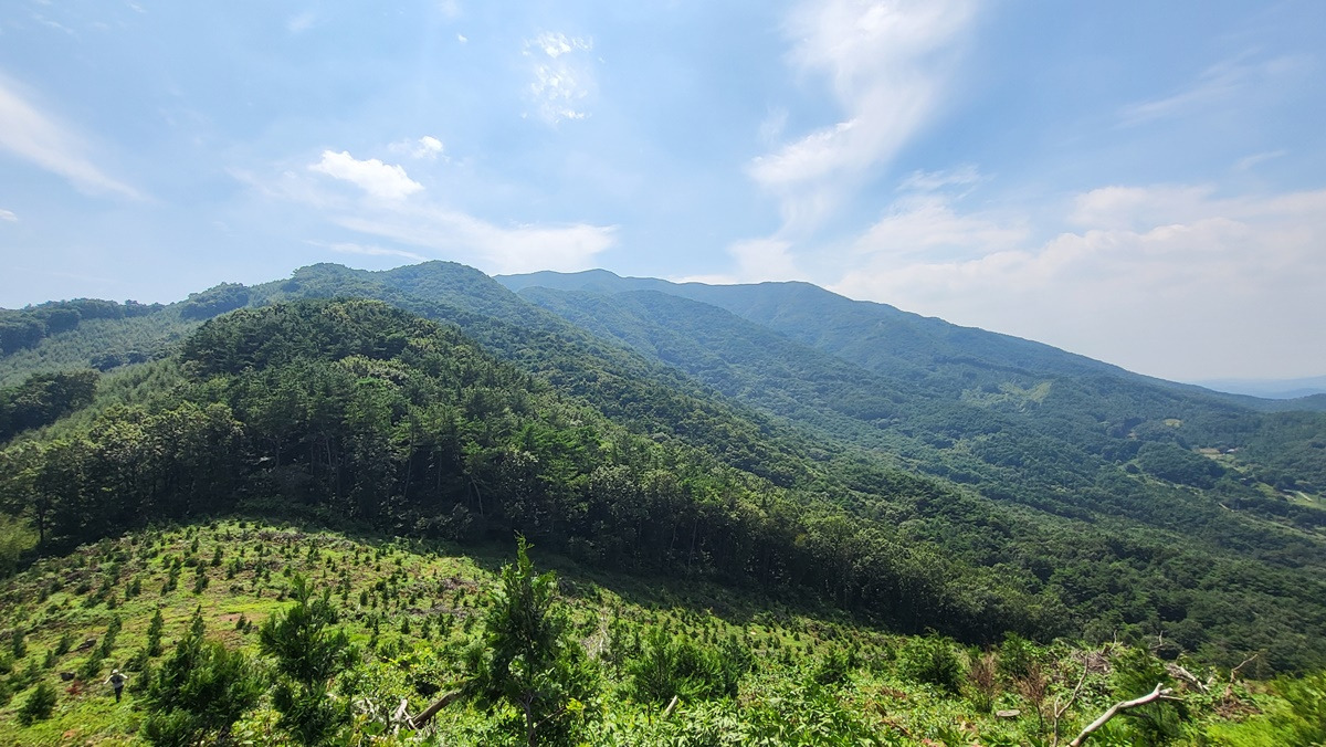 벌목지로 휭하던 곳이었는데 잡목으로 뒤 덮힌 차동고개에서 장학산 가는 능선 모습