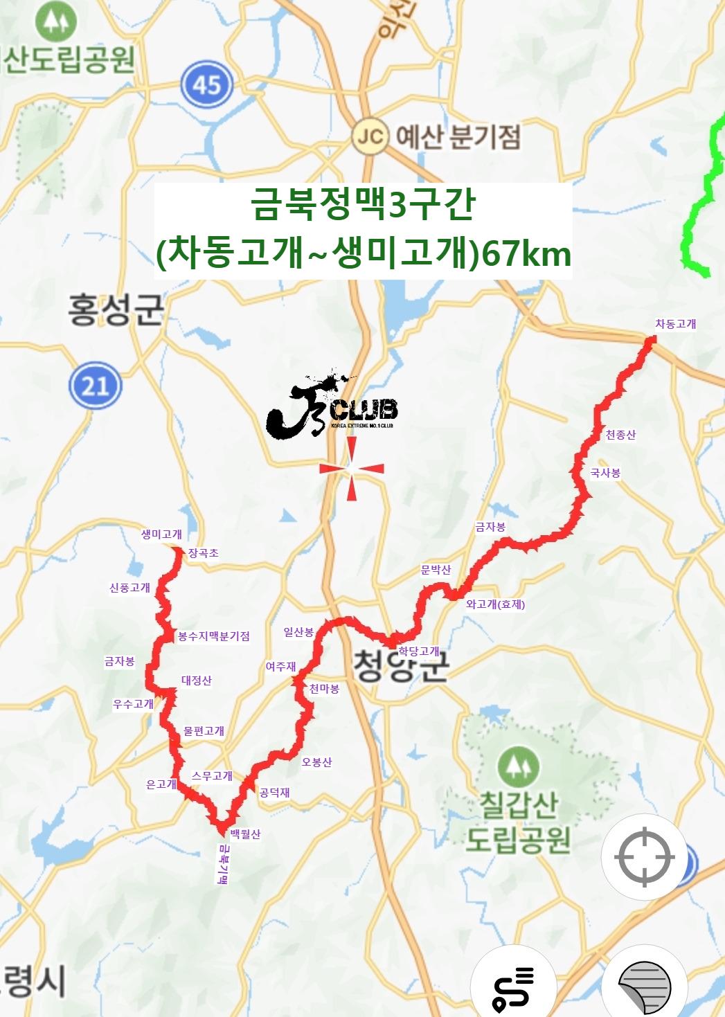 | 금북 | 197.91 | 3구간 진행, 현재위치 ☞ 생미고개(장곡초) |