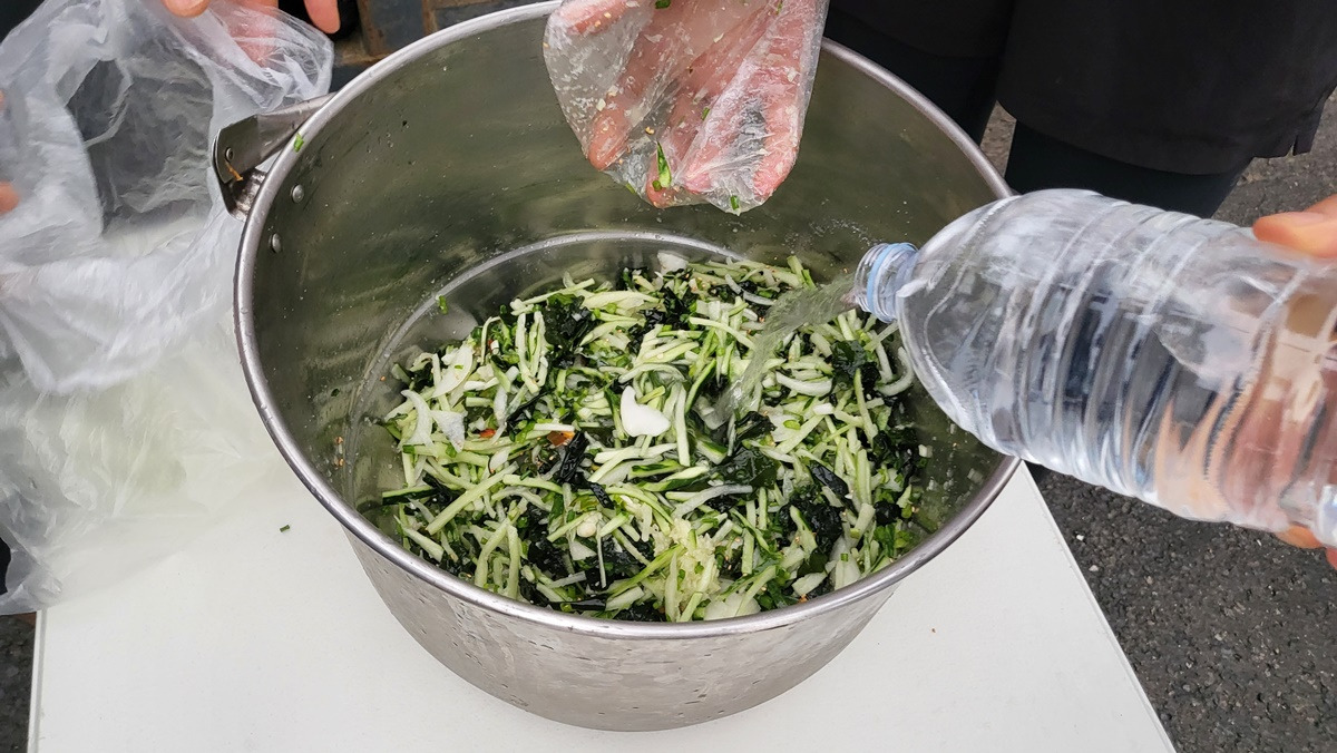 희야고문님이 준비해온 냉국 조제중...