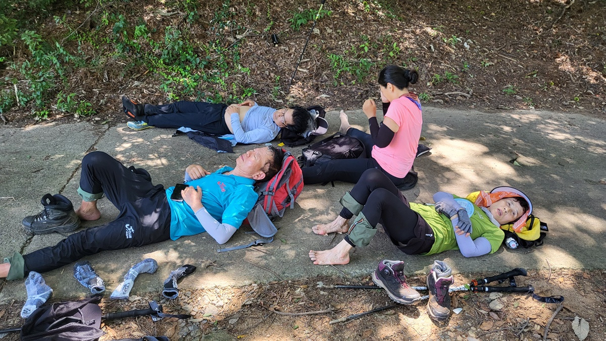 작성자래선생 작성시간 25.08.13 앵! 다른분들은 아직 안 내려오셨나요?ㅎㅎ 더운날 고생하셨습니다. 전체적으로 고지는 낮아 보이지만 길이 만만치 않은가 봅니다. 중간에 다들 누워있는 모습 j3 같구요! 희야고문님 발가락이 인상적입니다.ㅠㅠ
