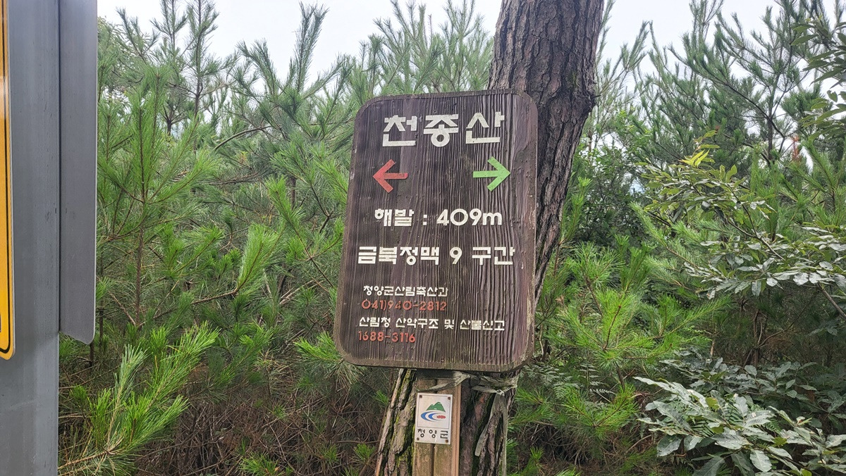 조금 더 진행하면 천봉갈림길에 이정표에 정상목표지목이 있다.