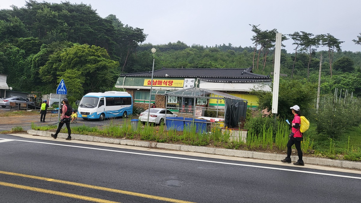 우측 삼남매식당 ,주유소가 있는 곳으로 가서 1차 휴식하고 쉬어 간다.