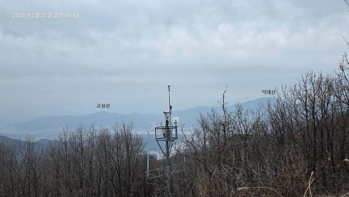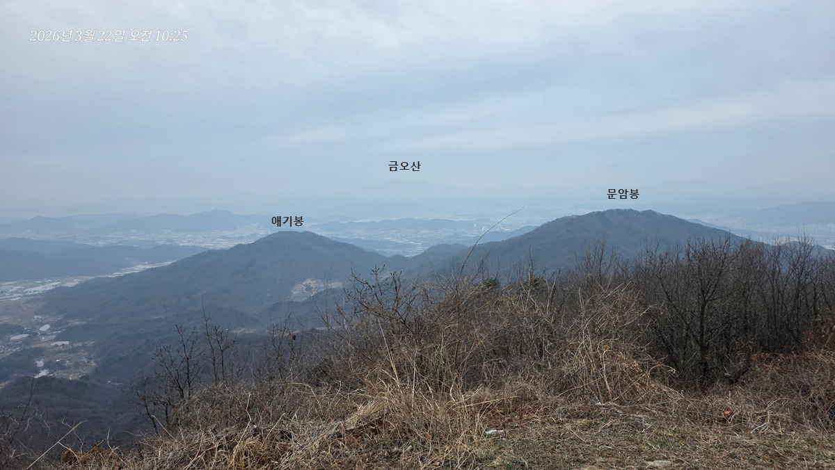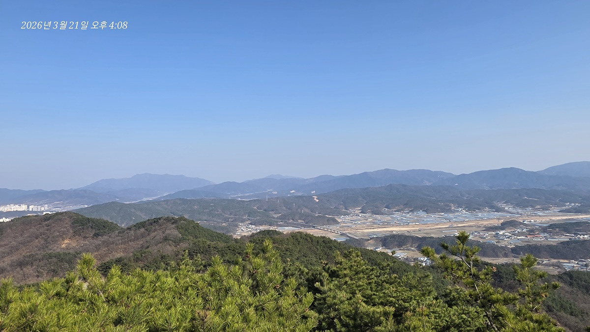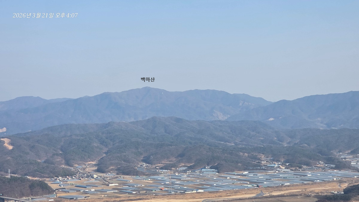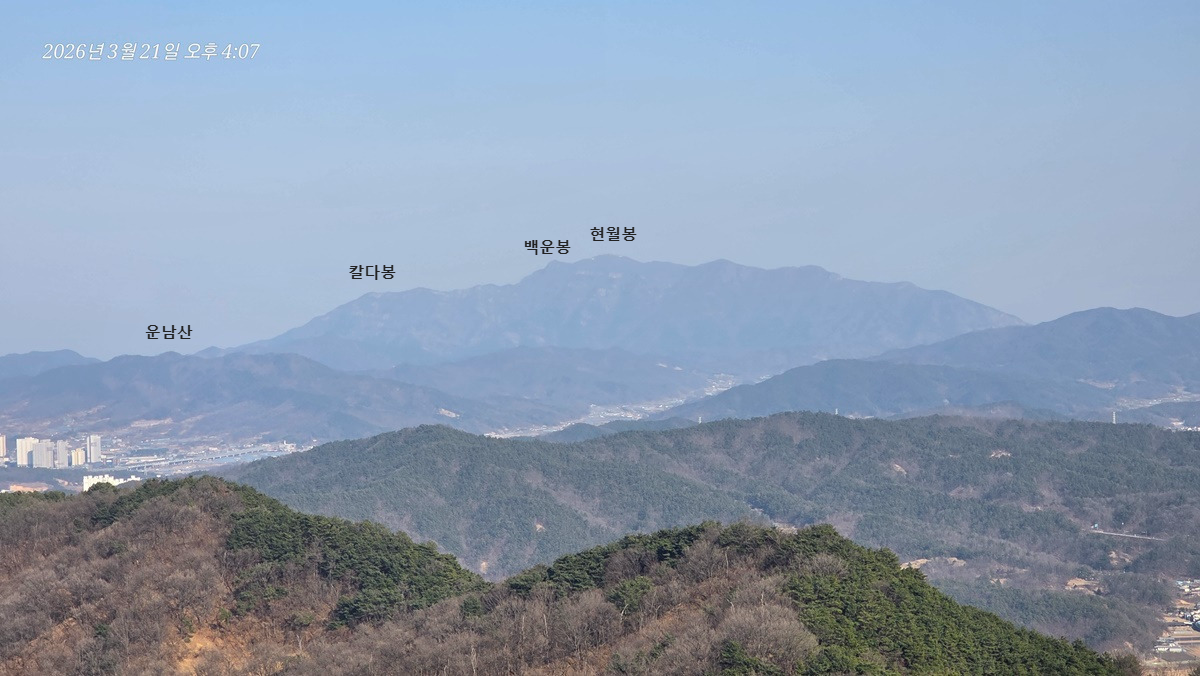 염속산 뒤로 가야산이 있을 방향인데 희미해서 안보이는건지 가려서 안보이는건지 모르겠다.
