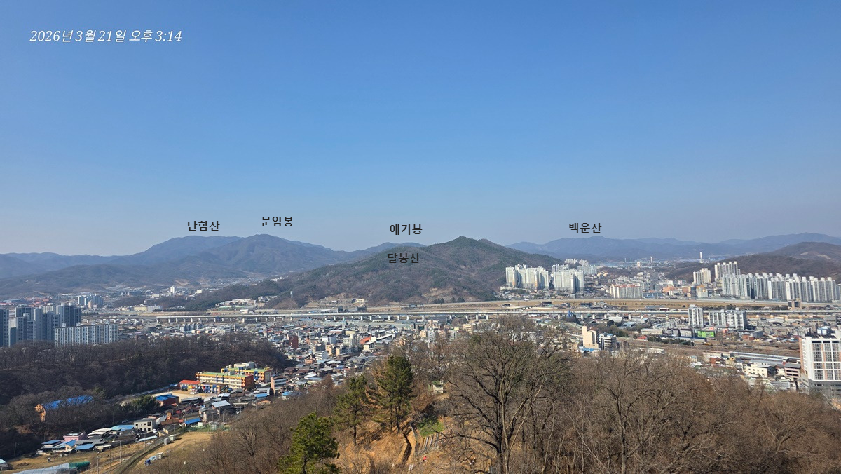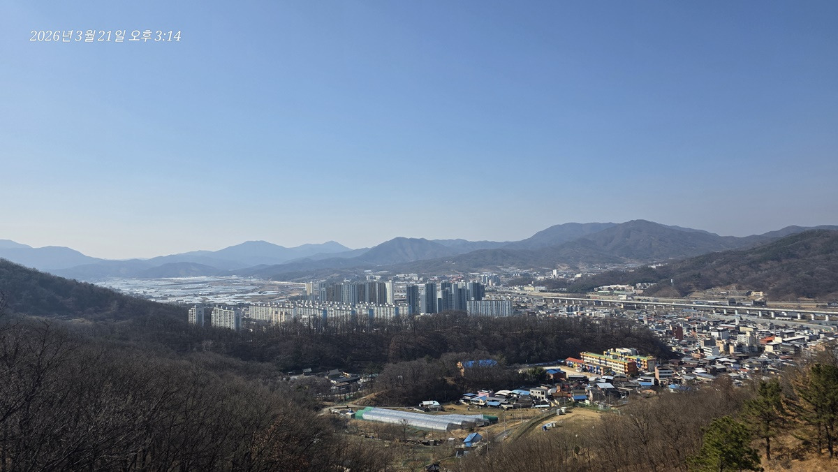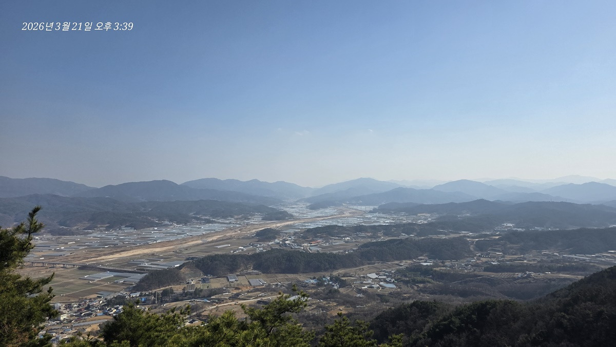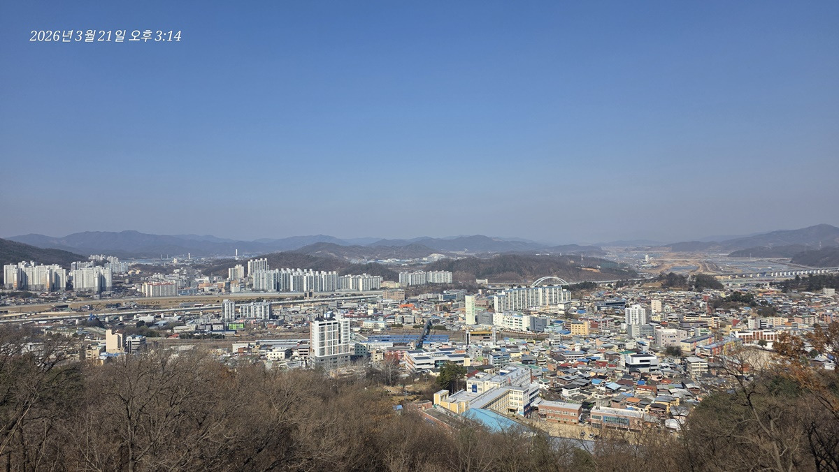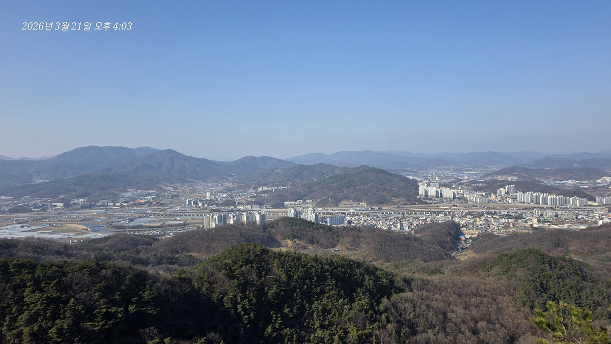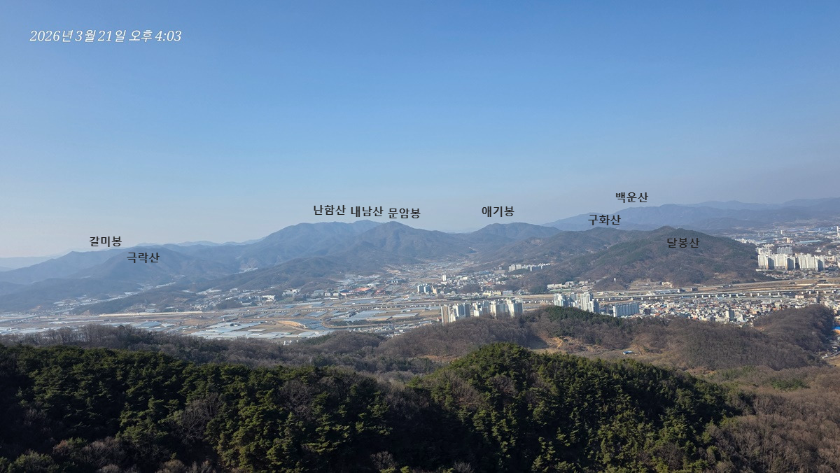 염속산 뒤로 가야산이 있을 방향인데 희미해서 안보이는건지 가려서 안보이는건지 모르겠다.