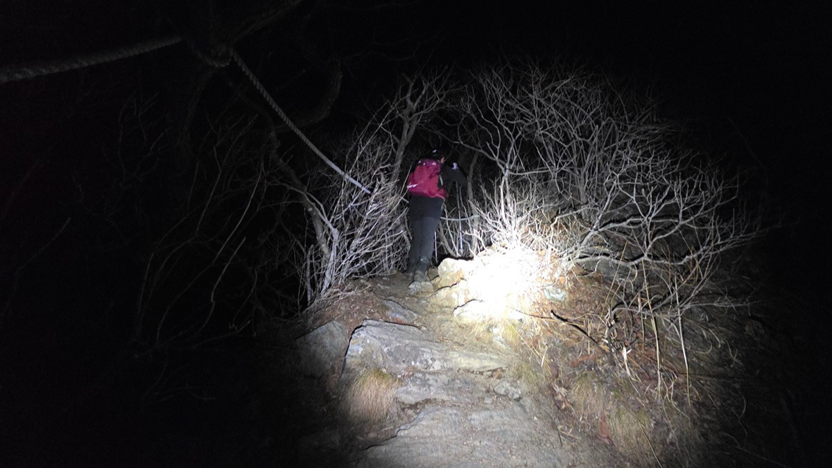 진밭산 내려서는데 바래봉 다녀오는 호수와 셀의 불빛이 보인다.