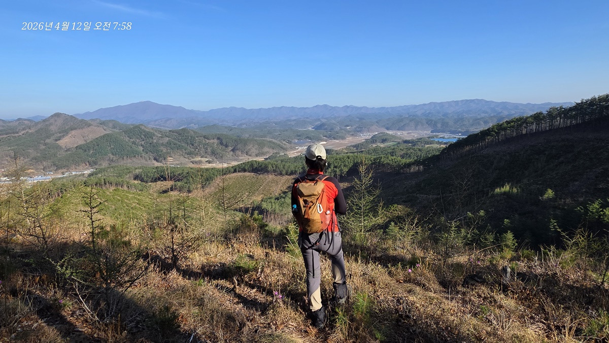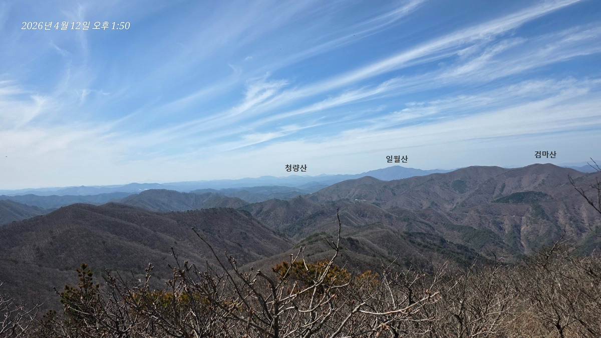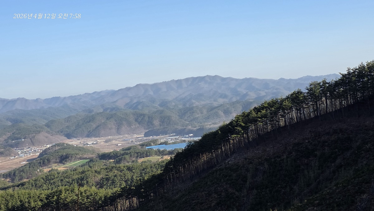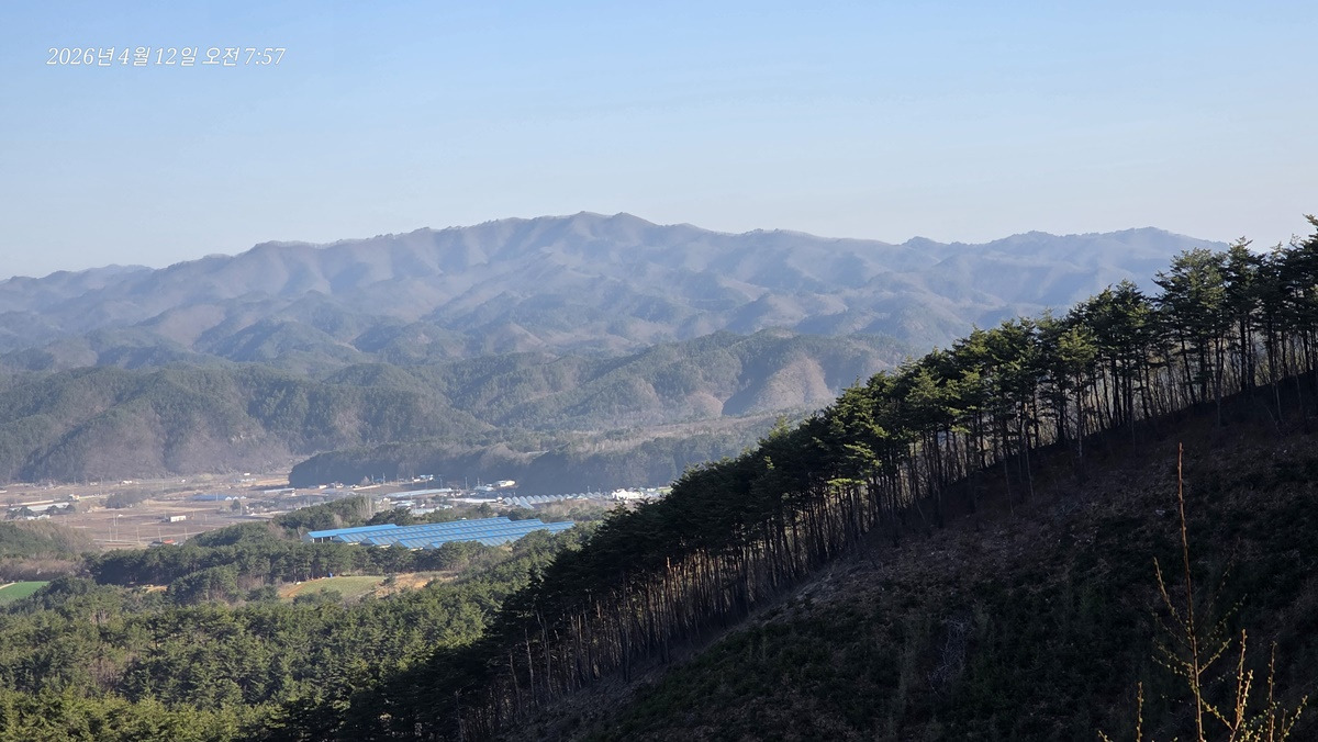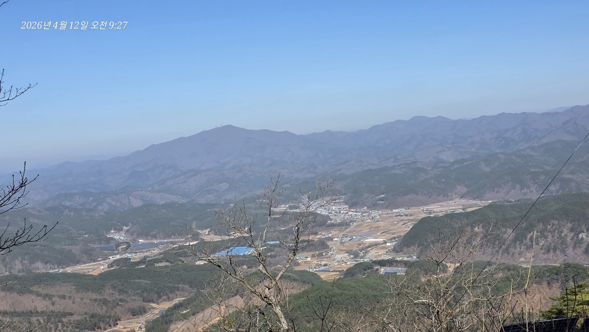남서방향으로 일월지맥의 일월산이 보인다.
