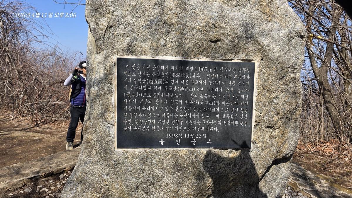 통고산 정상석 뒷면에는 전설같은 유래가 상세히 적혀 있다.