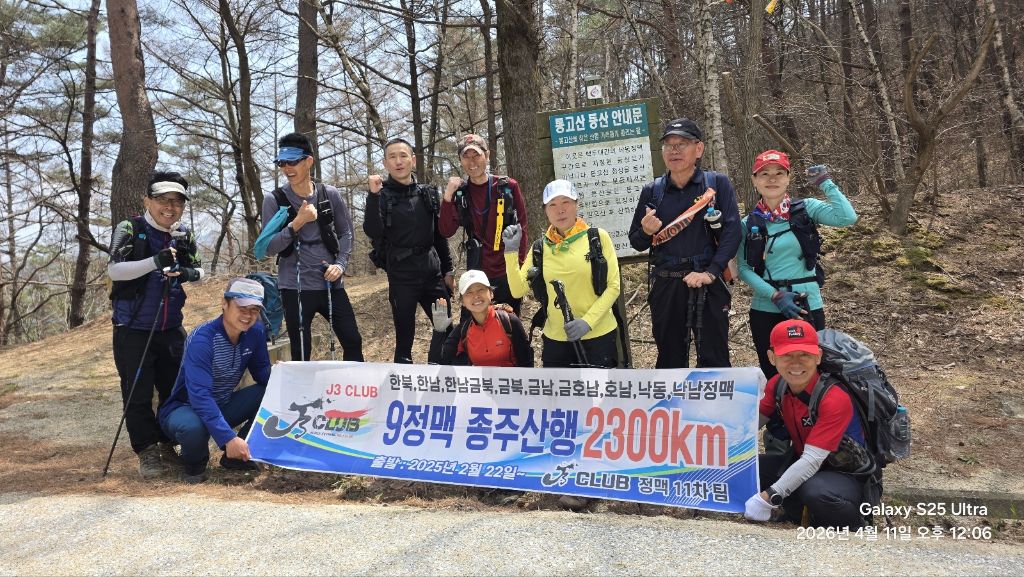 | 9정맥누적거리 | 1,882.10 | 산행기간>> 2025.02.22 ~ 2026.04.12 |