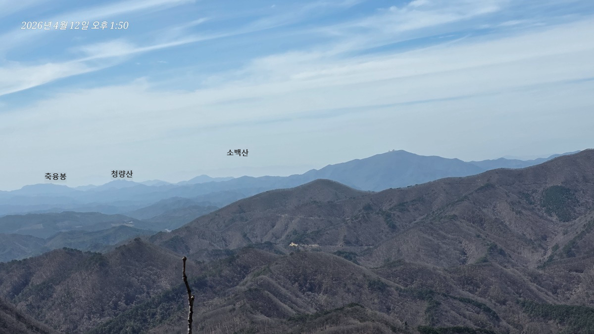 축융봉과 청량산을 당겨보고 멀리 소백산 주능이 희미하게 보인다.
