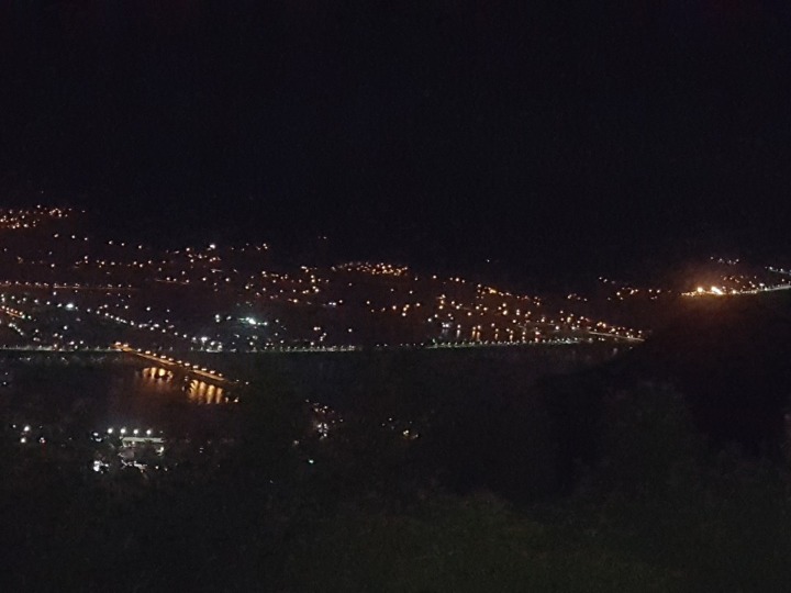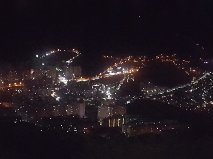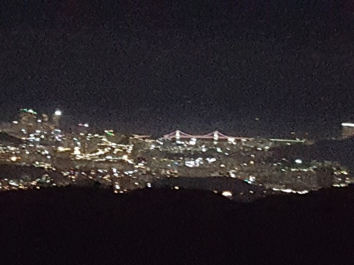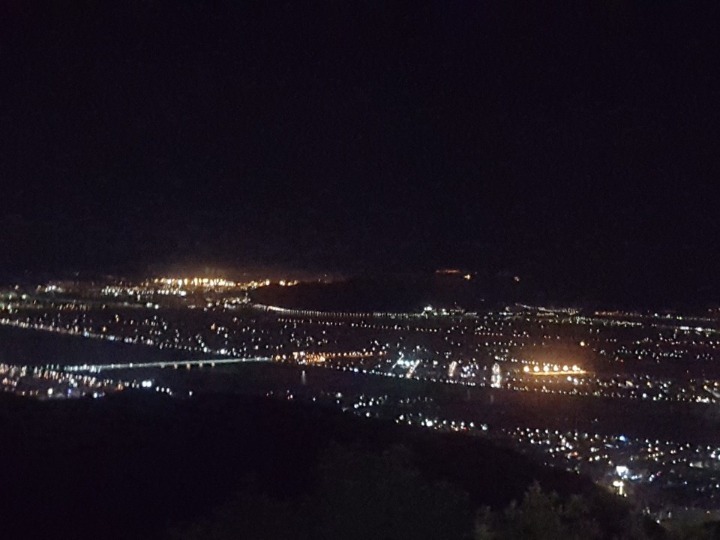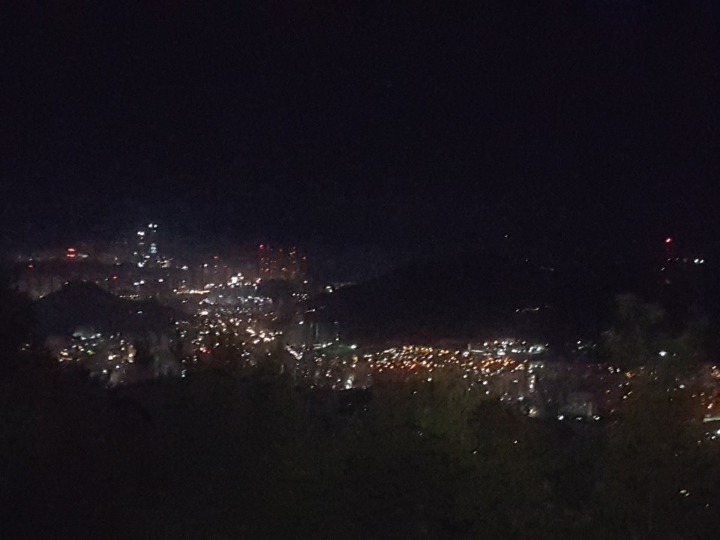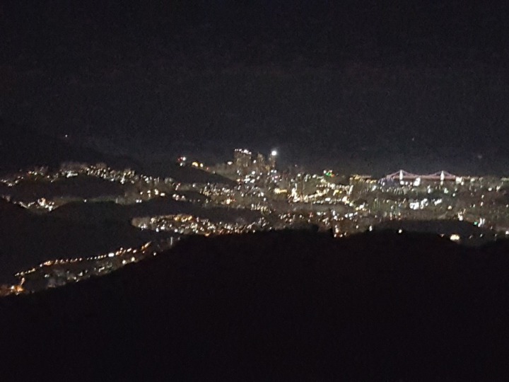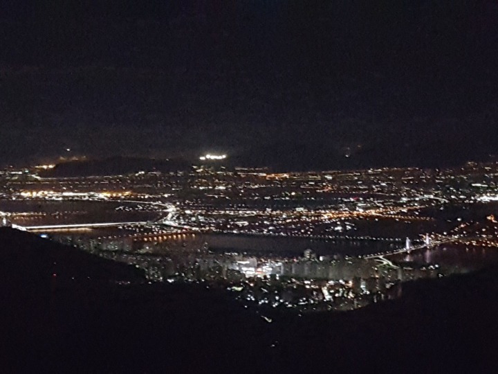 눈에 파아란 불빛보내는 고양이는 스틱으로 위혀해도 꼼짝도 안하고 우측 낙동강과 좌측 해운대와 광안리등으로 연결된 야경은 어찌나 선명한지 그경거리에 취해서 낮엔 지글거리고