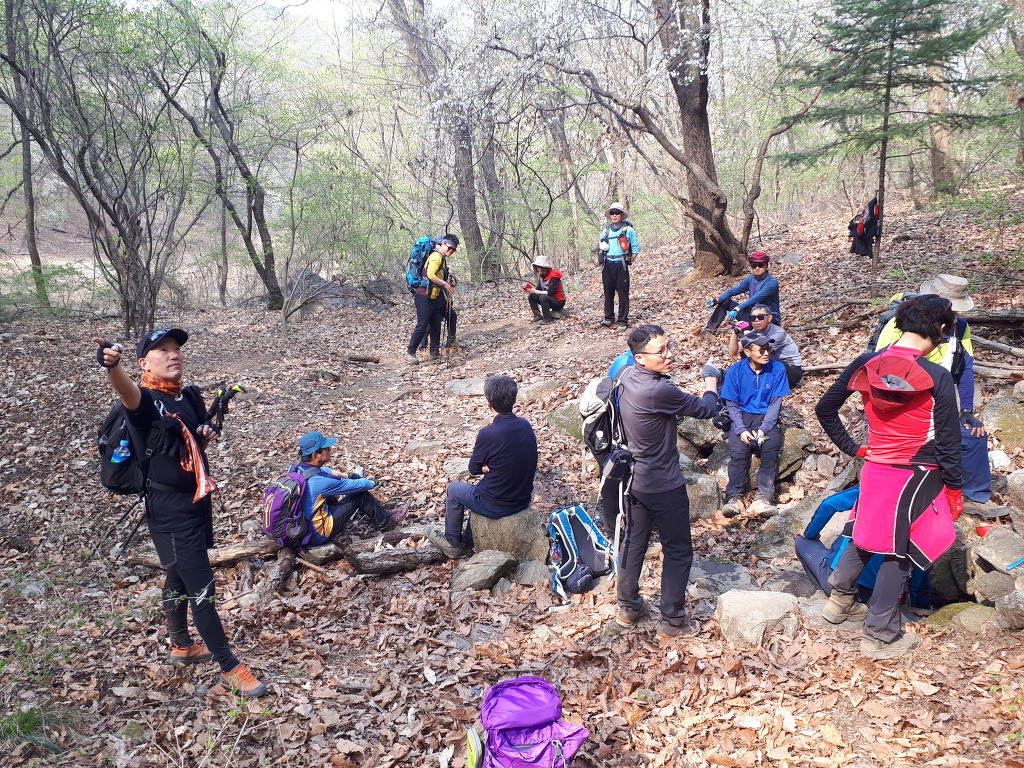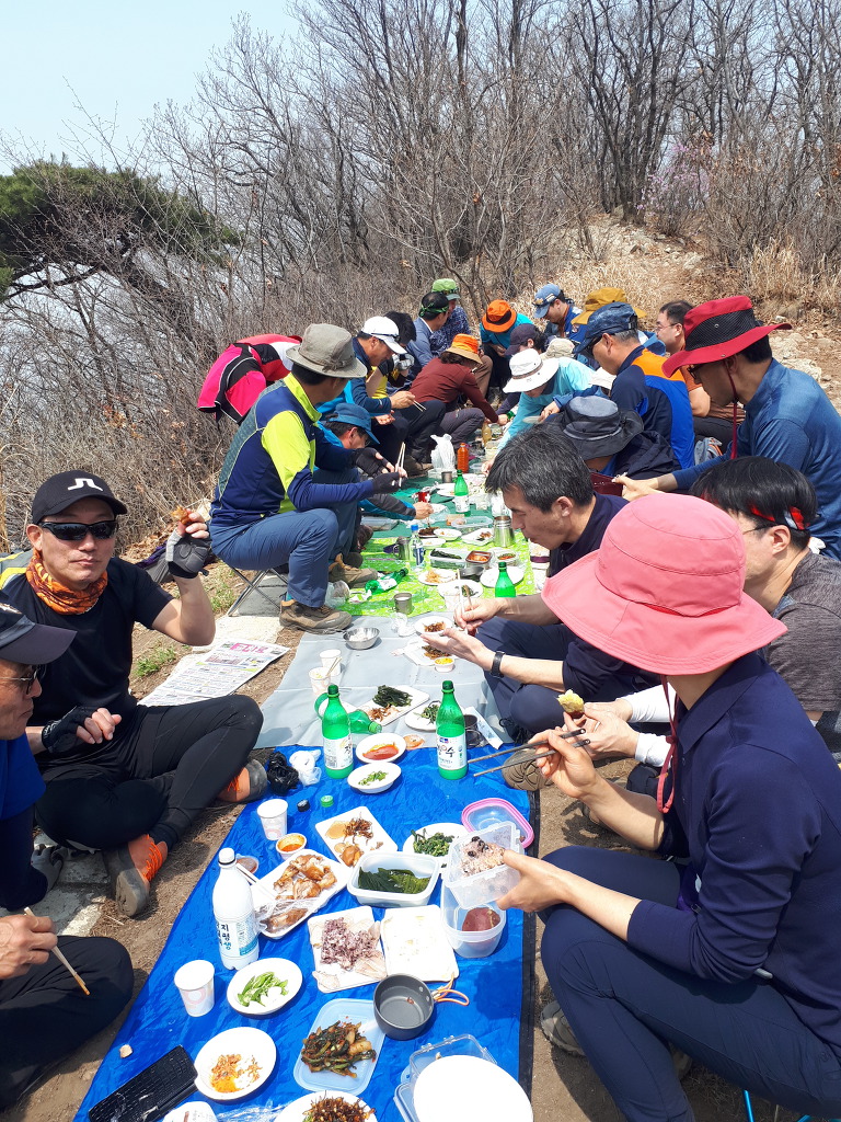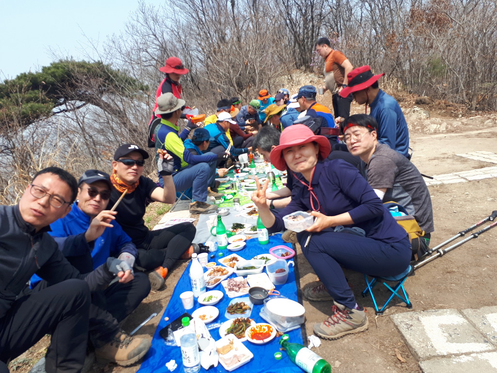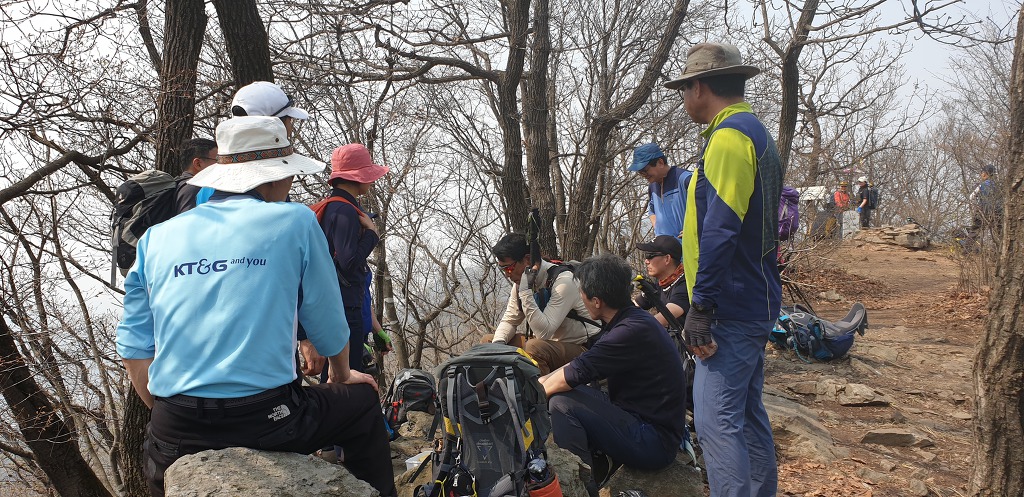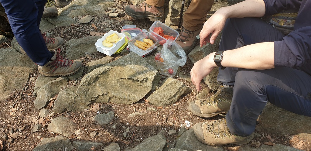 검단산 정상전에 공터에서 간식타임과 장작산에서의 점심 계획이