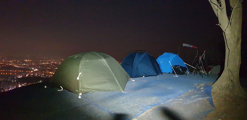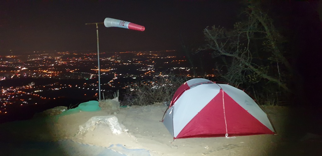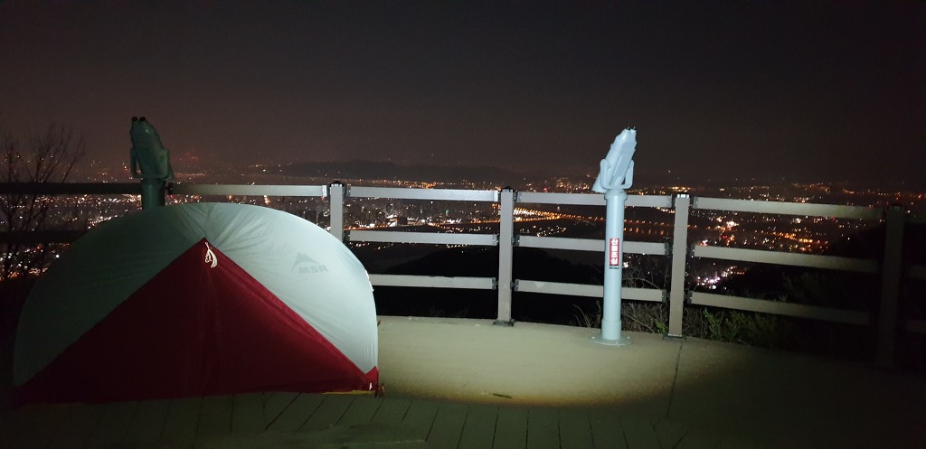 최고봉 예봉산에 전망대에 날씨가 좋아서 그런지 비박텐트가 많이 있습니다