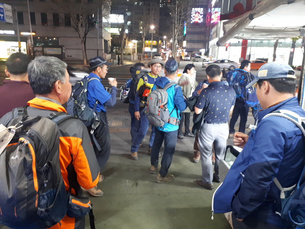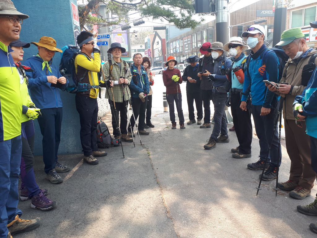애니메이션 고등학교 정문앞에서 수도권산악회 회원분들을 만나 검단장작 산행을 시작합니다