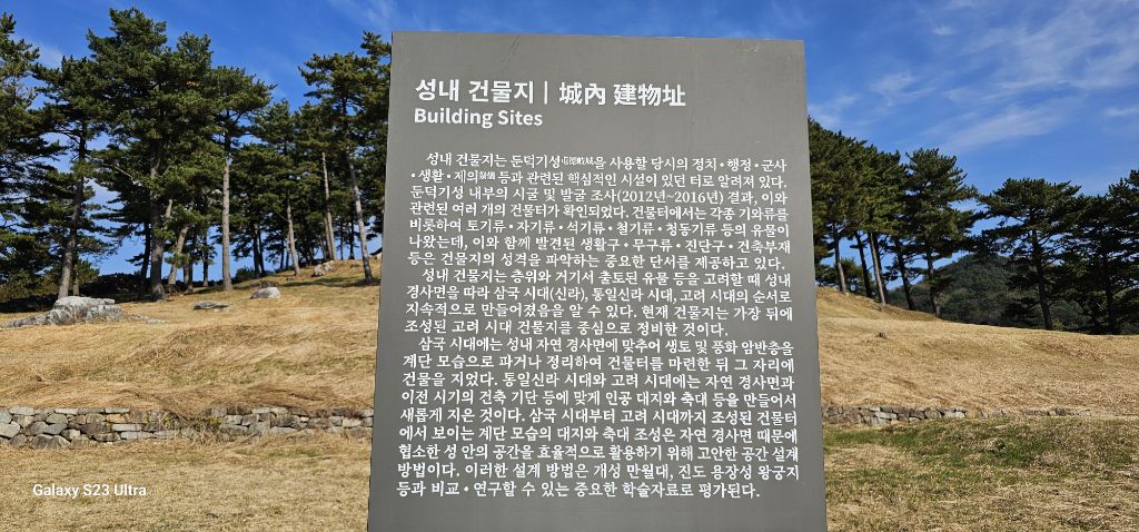 둔덕기성(屯德岐城)은 7세기 신라시대 축조수법을 알려 주는 중요한 유적으로, 우리나라에서 보기 드문 현문식(懸門式) 구조인 동문지(東門址)와 삼국시대 초축(初築)되고 고려시대 수축(修築)된 성벽 등은 축성법의 변화를 연구하는데 학술적으로 중요한 자료이다.