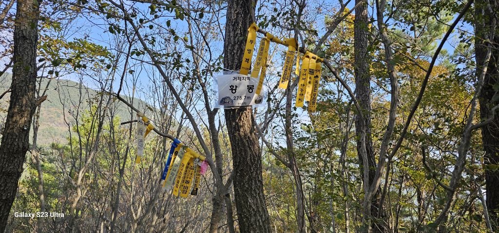 여기서 동서로 치달으며 우두봉(牛頭峰), 산방산(山芳山),노자산(老子山), 가라산(加羅山)이 계룡산(鷄龍山)을 휘감았다. <巨濟市誌>