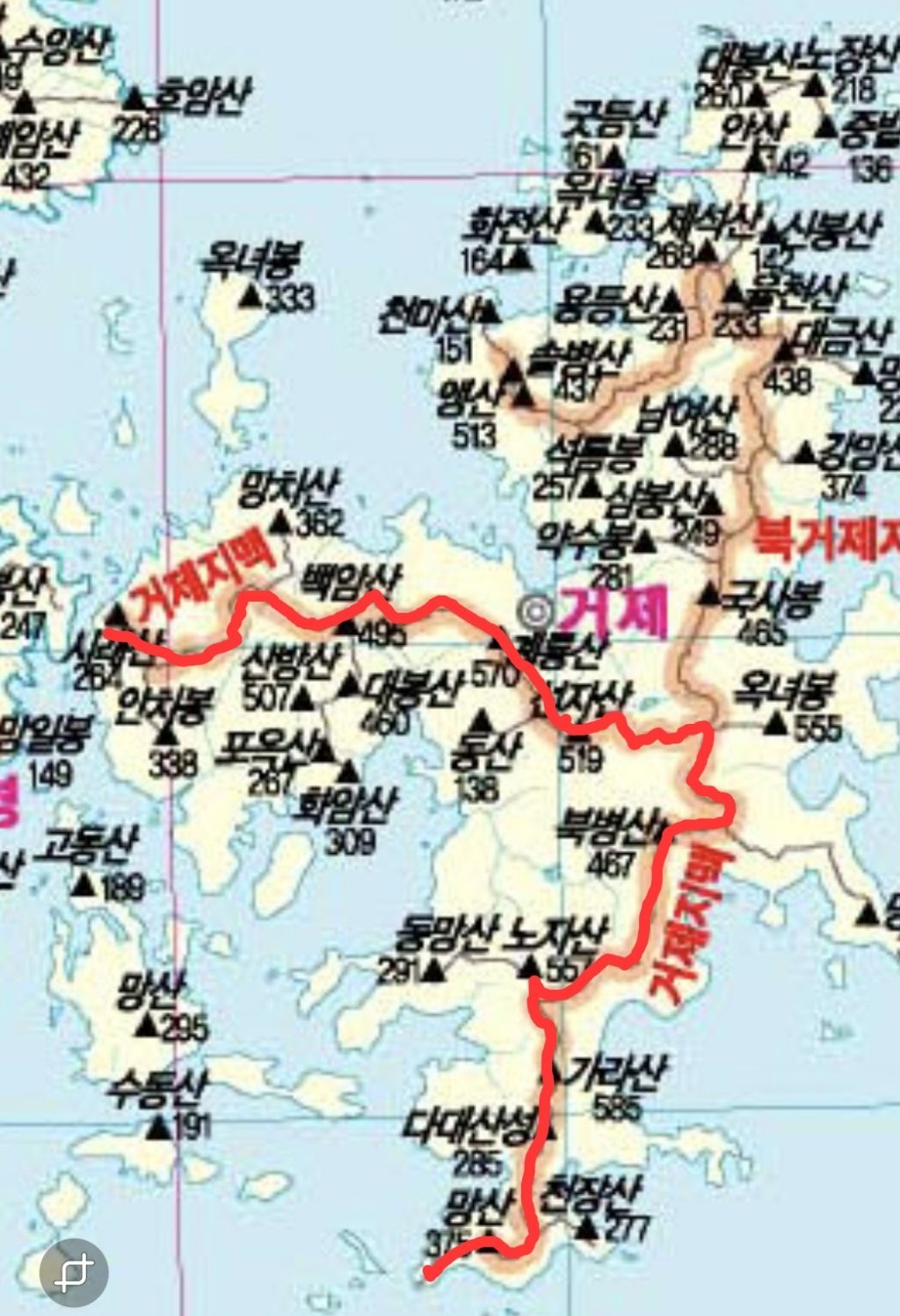 거제지맥과 북거제지맥으로 정리하고 있다.