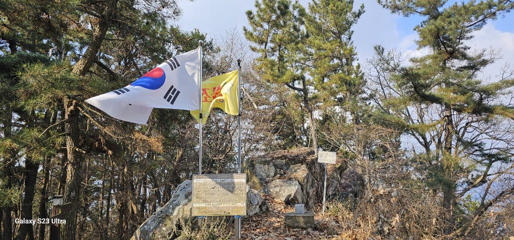 화개산 정상부위 태극기와 삼각점