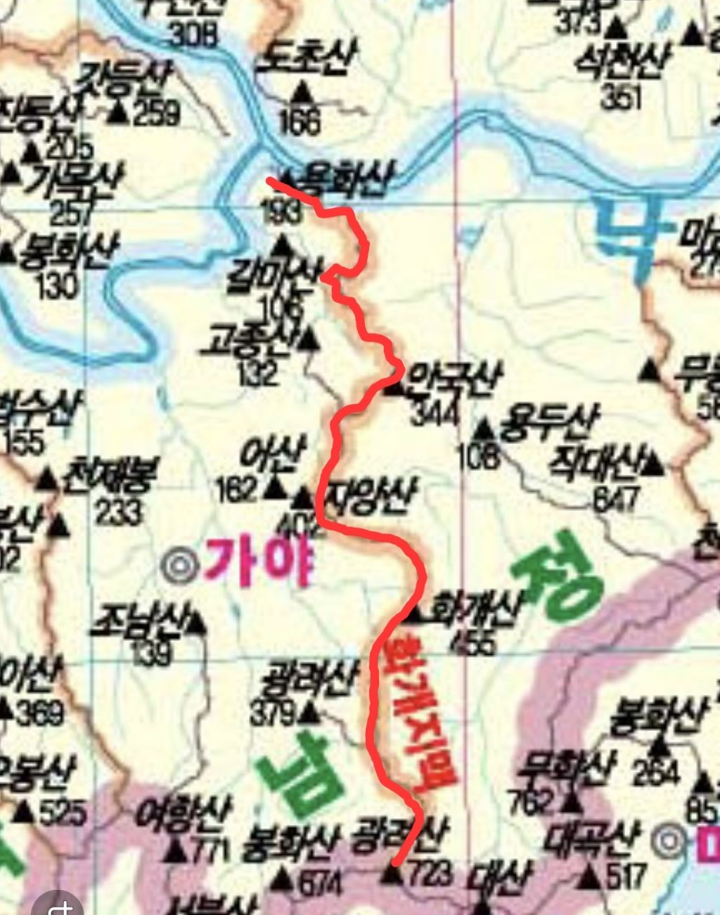 화개지맥 날머리 건너편 화왕지맥 날머리 지도상 보이는데 언제나 밟아 볼지 다음 기약을 해봅니다
