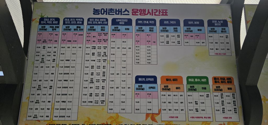 지맥산행을 하다보니 여기저기 무료버스를 가끔 이용합니다