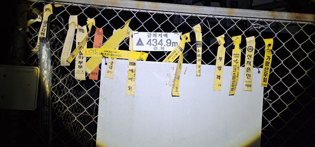 경사가 가파르고 돌이 많은 지반이 약하여 등산하기에는 위험하고 힘들지만 첩첩산중인 정상의 조망은 뛰어난 산인데 밤이라 아쉽긴 합니다.